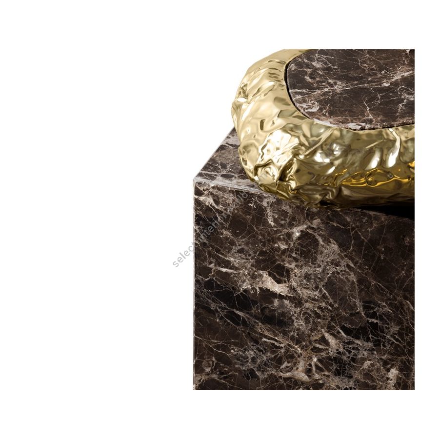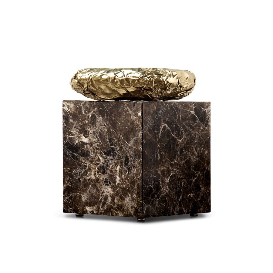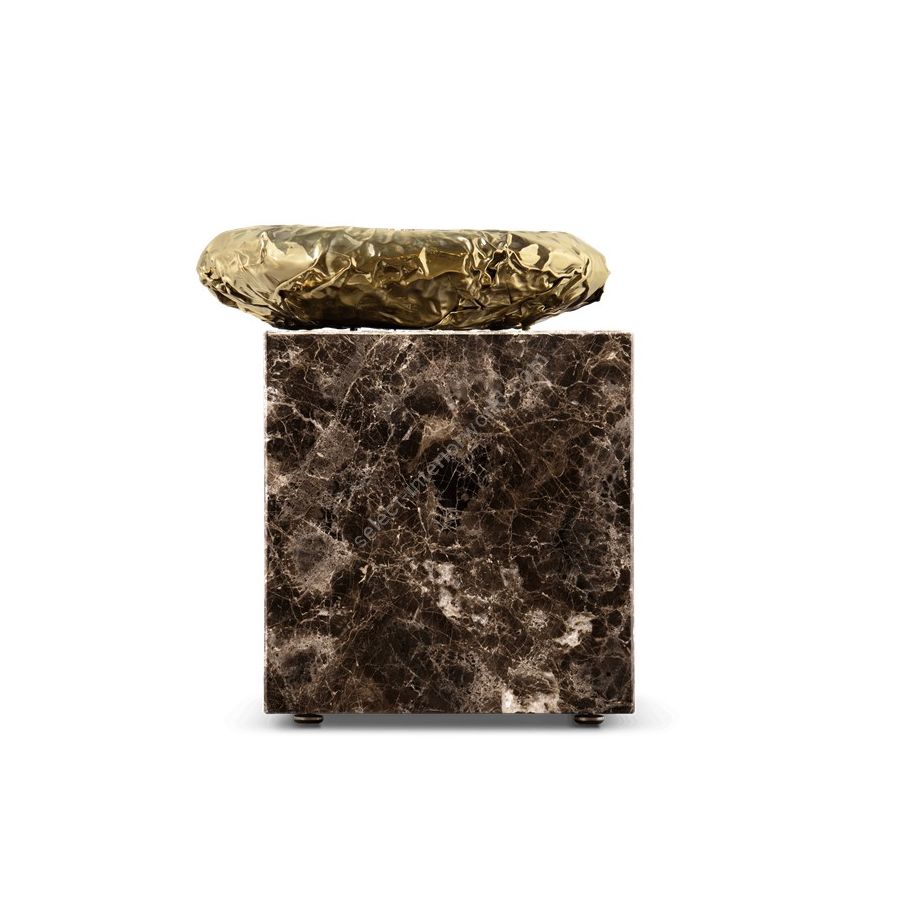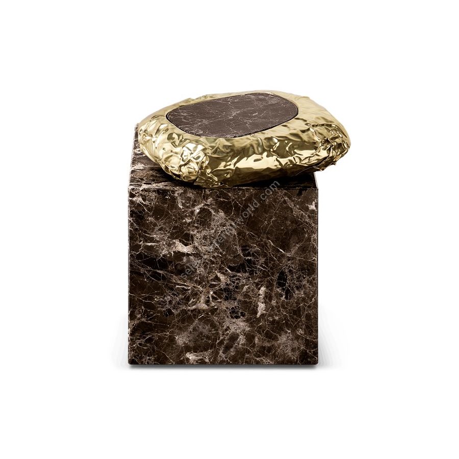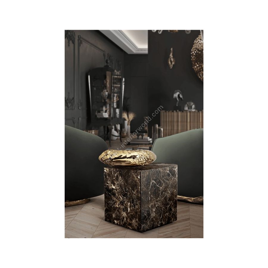 Finding inspiration in the prehistoric monument Stonehenge, positioned asymmetrically and composed by a striking variety of finishes and materials – brass and marble. This coffee table promises to elevate your living space to the next level. The metallic hues make an elegant contrast while beautifully combine and pay tribute to the Neolithic and Bronze Age.