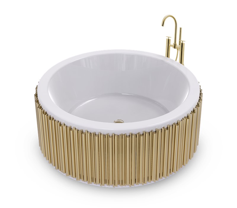 This emotional cylindrical bathtub is inspired by music. The gold-plated brass tubes give the needed touch of luxury, making the Symphony bathtub an item of elevated design. The tub is made of white fiberglass giving it a clean look perfect for any luxury bathroom.