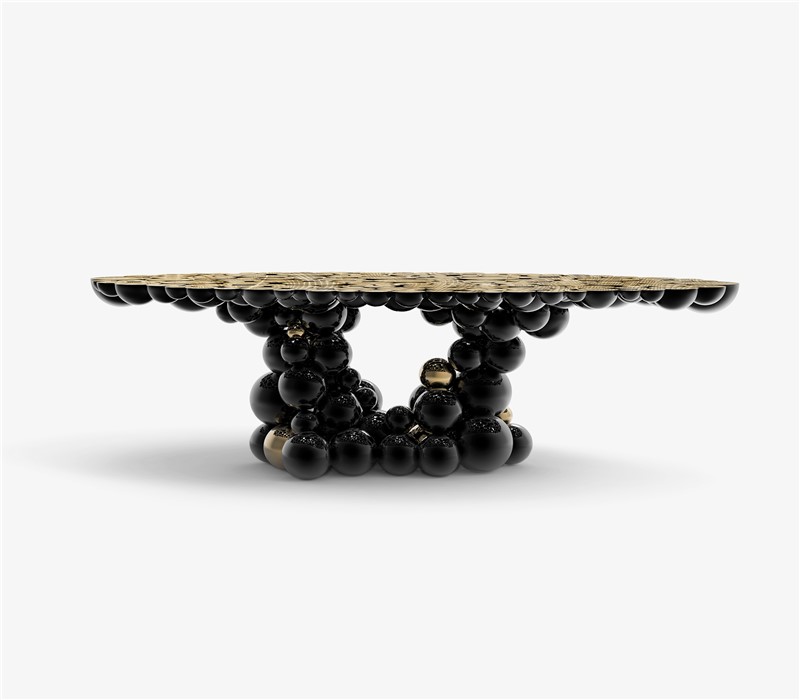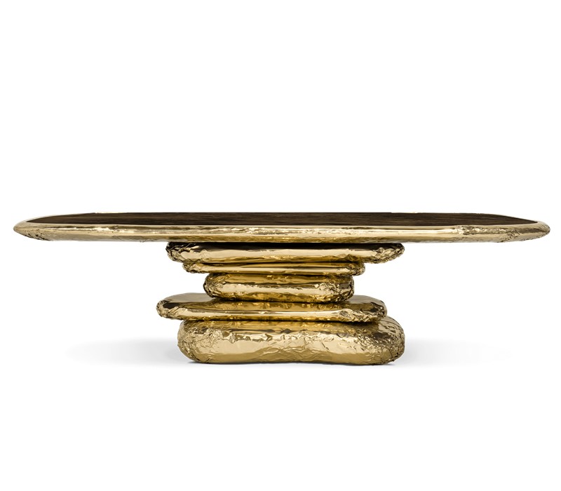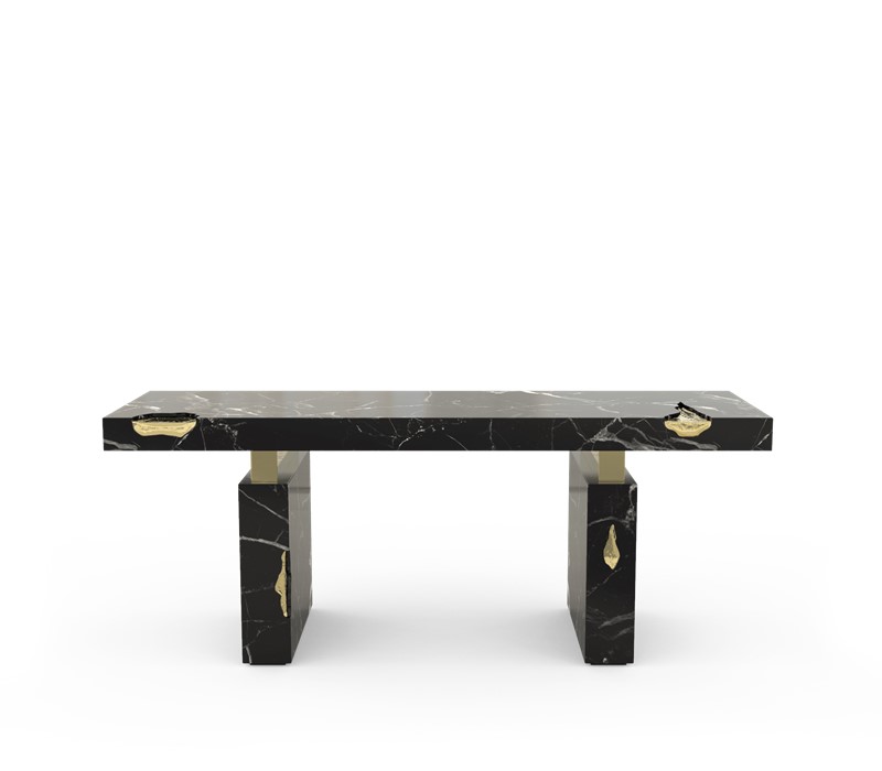 Fortuna is a contemporary office desk with a unique design aesthetic and refined statement to the most influential minds. This modern desk incorporates nature-inspired design, industrious welding techniques and a manually engraved top that emulates the outlines of log rings, reminding the timeline of a tree. Below the large desktop is an elegant composition of two scaled brass tubes, each one holding two drawers and one door covered by a sleek veneer, and a central drawer for files in between. Fortuna is a unique writing desk that embodies the fearless state mind of Boca do Lobo and the availability to customize the features to accommodate the most demanding client’s requirements.