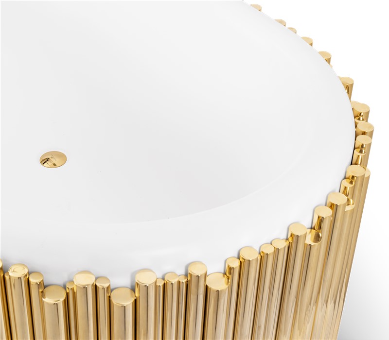 Like a perfect symphony, we created this bathtub. The gold-plated brass tubes stand out on this oval-shaped design, giving it the elegant yet luxurious look you are searching for. The tub is made of white casted iron giving it a clean look that is perfect for any luxury bathroom project.