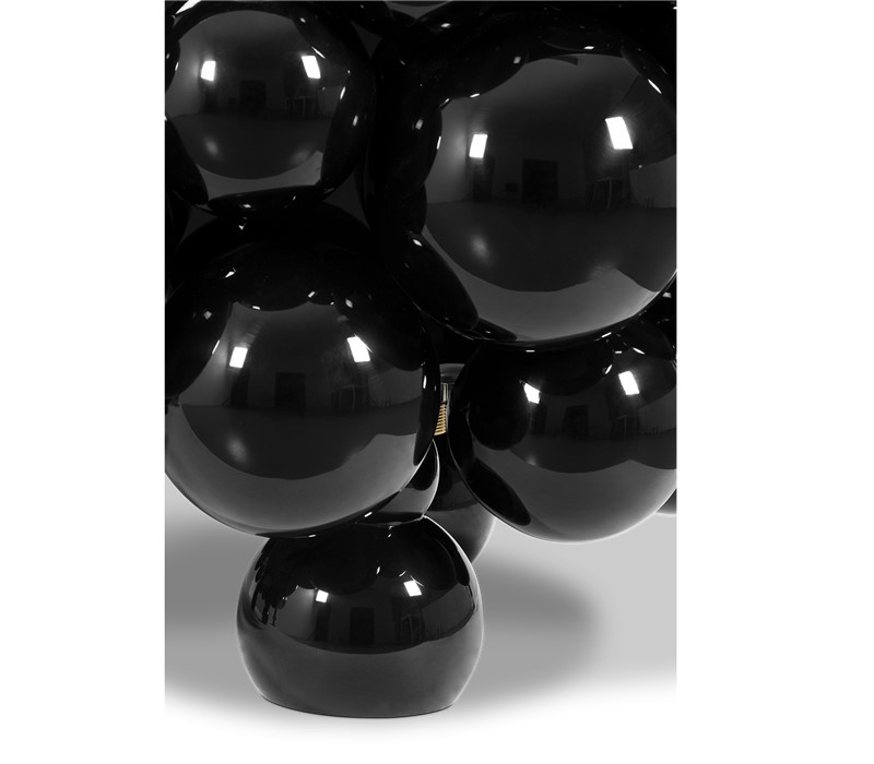 Black lacquer brass spheres with high gloss varnish finishing and some gold plated spheres on the base.