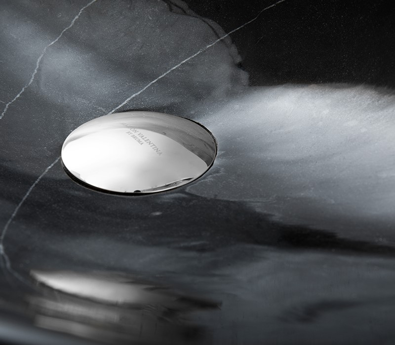 Structure: Wood; Outside: Black lacquered, High gloss varnish; Base/Inside: Gold leaf; Sink/Cover: Black lacquered glass; Water drainage: Wall