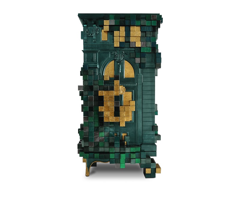 The design of Navarra modern center table captures unique Spanish warmth and finest craftsmanship. The rich colour background set off by thick and thin veins alike carries the eyes to the top of this table, framed by brass. Taking inspiration from its homeland, the Navarra coffee table brings an elegant flair into your home decoration. It is a contemporary center table composed by two square marble modules, linked by an organic marble surface element on top enveloped by casted brass. An exclusive design piece and polished choice for luxury home interiors.