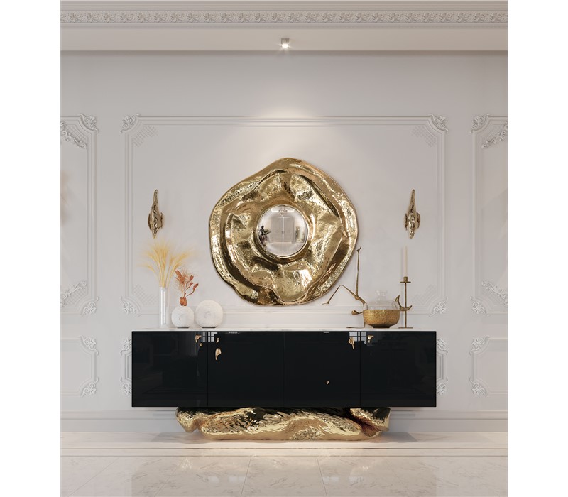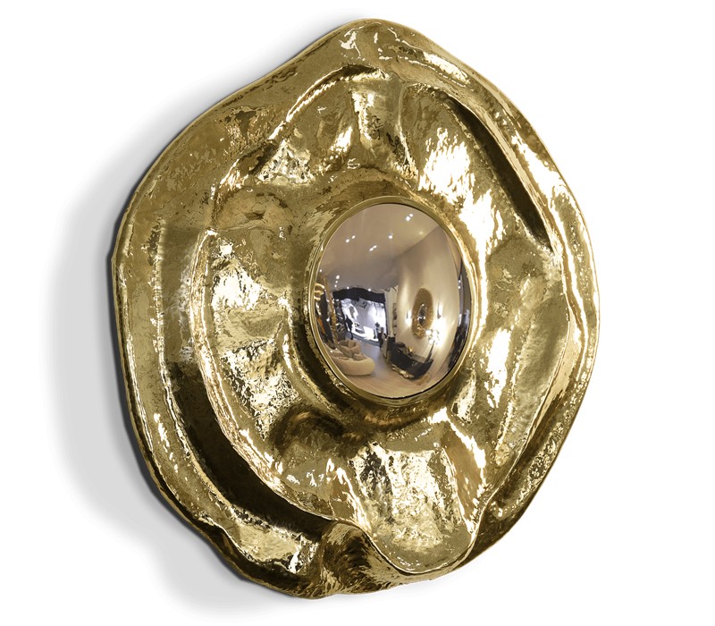 This large wall mirror offers a tribute to the historical city of Angra do Heroísmo in Azores, Portugal. The seductive and elegant mirror, it's outstanding in its shape and curved design. The polished brass creates a superb accent providing a glamorous design.
