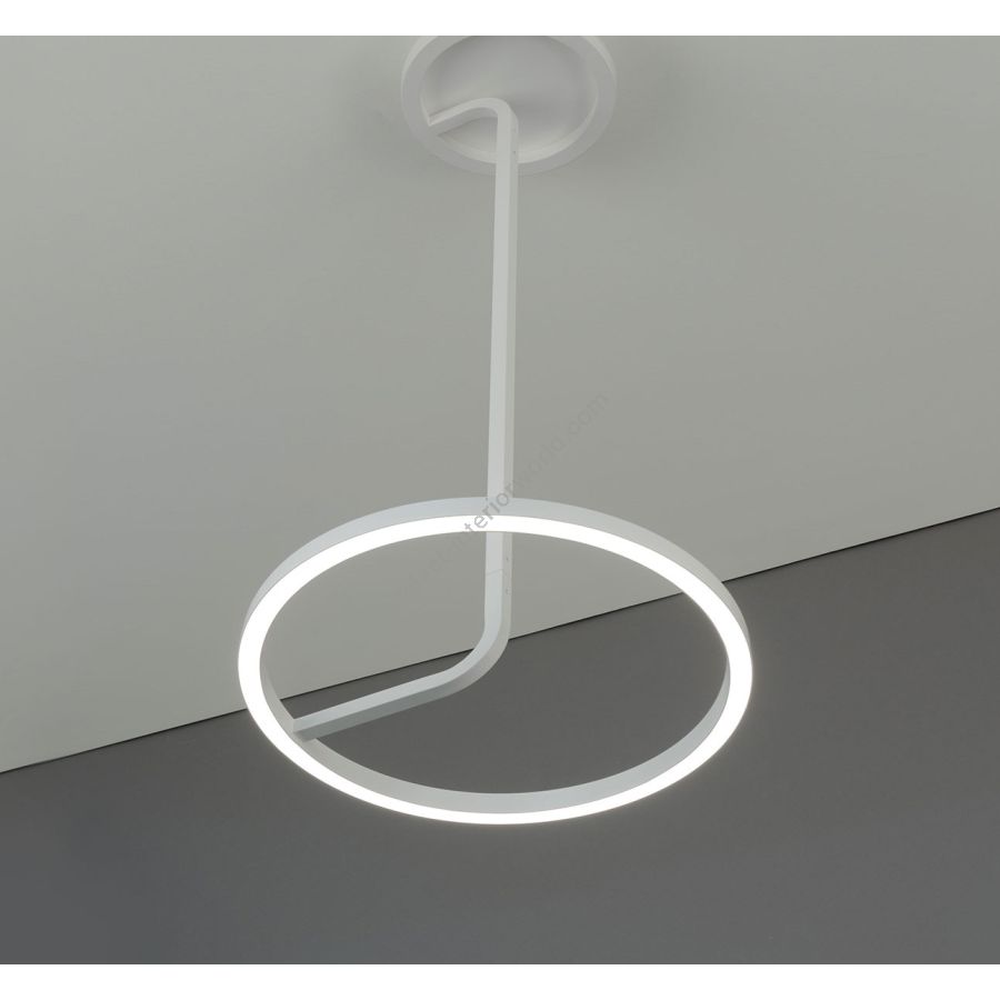 Hoopla wurde von Anfragen von Architekten und Lichtdesignern nach „Non-Fixture Fixtures“ inspiriert, die freie Räume nicht überladen oder mit zurückhaltenden Innenräumen konkurrieren. Ein gewundener Vorbau aus einem knappen, pulverbeschichteten 7/8-Zoll-Aluminiumkanal beginnt am Baldachin und fällt ab, um einen beleuchteten „Reifen“ mit 16-Zoll- und 24-Zoll-Durchmessern zu bilden. Es ist auf Leistung ausgelegt und verbraucht bis zu 36 Watt Leistung bei 2700 °k und 90 CRI, wodurch es sich perfekt für jede Büroumgebung eignet.