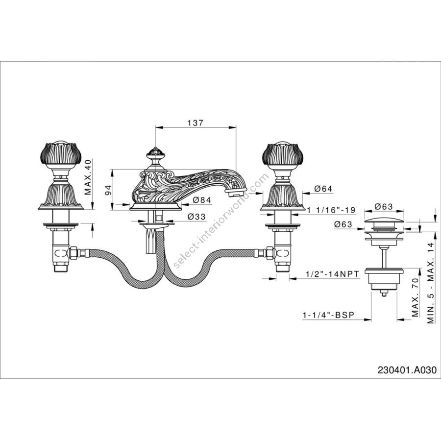 - Bronces Mestre / Waschtisch-Armaturen / Drei-Loch-Waschtischgarnitur mit Klick-Klack-Ablaufgarnitur 230401.A030.50