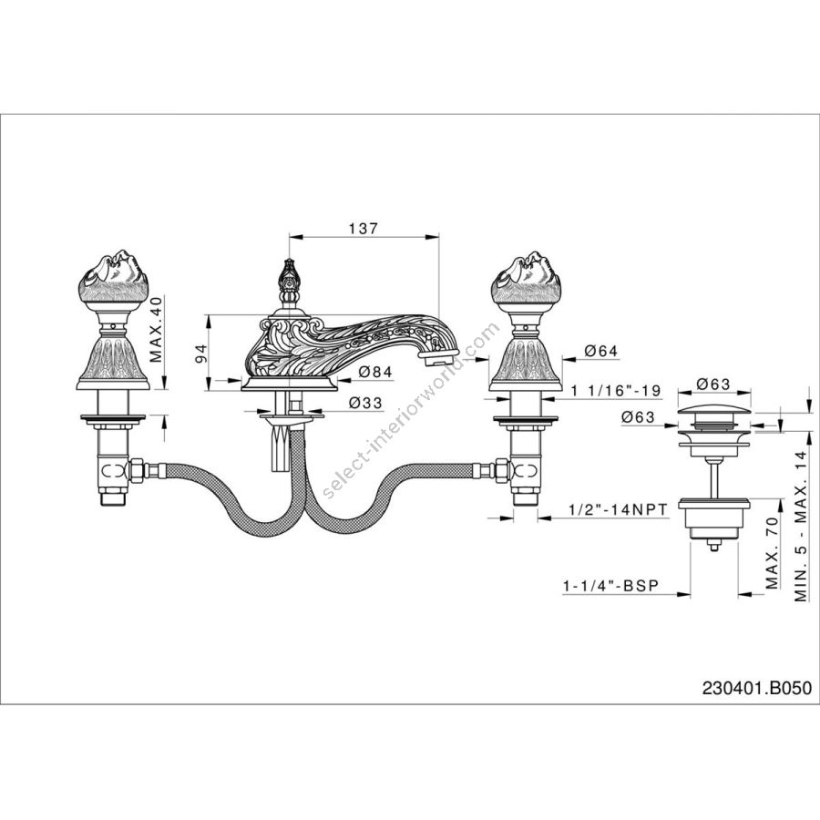 - Bronces Mestre / Waschtisch-Armaturen / Drei-Loch-Waschtischgarnitur mit Klick-Klack-Ablaufgarnitur 230401.B050.50