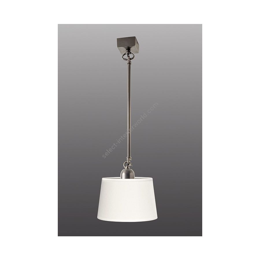 Deckenleuchte aus Messing. Sie besteht aus einem vertikalen, runden Rohr mit quadratischem Sockel, das an der Decke befestigt wird. Diese schlichte Deckenleuchte fügt sich dezent in Ihre Einrichtung ein. Erhältlich in Schwarz oder mattgoldener Patina sowie in Nickel oder gebürstetem Nickel. Auch in den Größen S (S01-20) und S (S01-70) erhältlich. Der abgebildete Lampenschirm ist aus weißem Baumwollchintz gefertigt und hat eine konische Form (weitere Formen und Farben siehe unten).