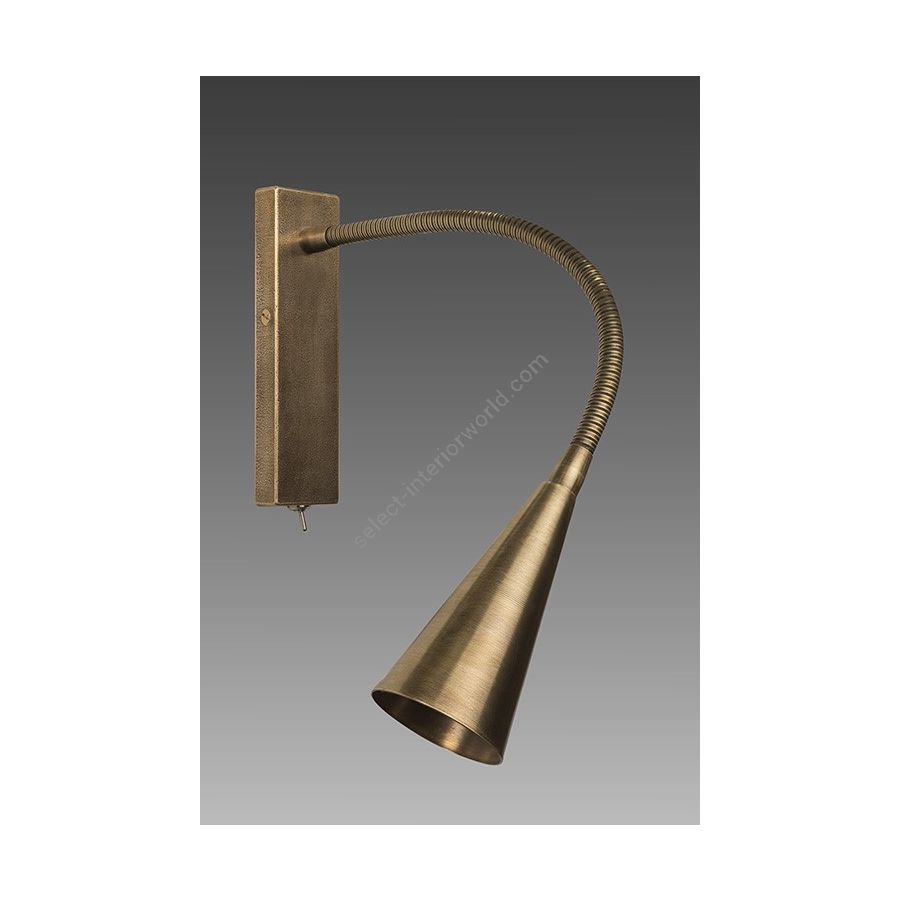 Wall light with Led light made in brass. Made with a 30cm flex on an embedded rectangular base. This reading wall light gives a sober and elegant design, and an efficient direct light. Available in black or matt gold patina, and in nickel or brushed nickel