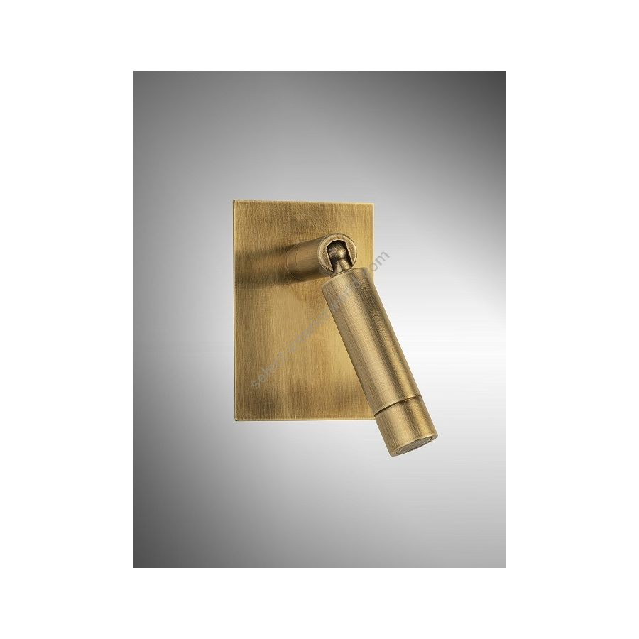 Wall light with Led light made in brass. Made with a led head fixed with a rotating kneecap, on an embedded rectangular plate with wall command (without switch). This reading wall light gives a sober and elegant design, and an efficient direct light. Available in black or matt gold patina, and in nickel or brushed nickel
