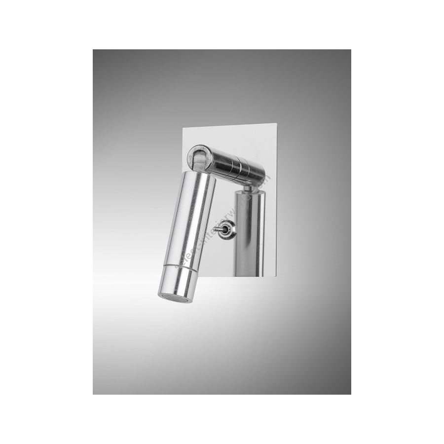 Wall light with Led light made in brass. Made with a led head fixed with a rotating kneecap, on an embedded rectangular plate with switch. This reading wall light gives a sober and elegant design, and an efficient direct light. Available in black or matt gold patina, and in nickel or brushed nickel