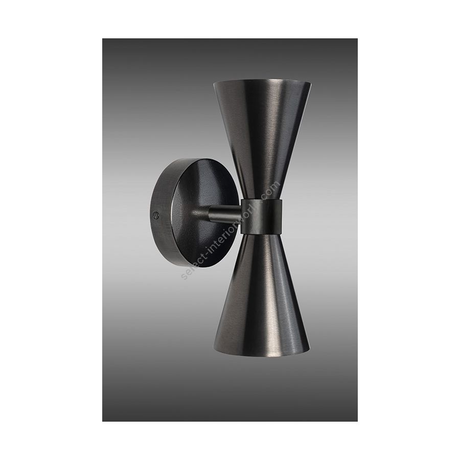 Wall light made in brass. Made with 2 cones on a round base. This wall light gives a touch of contemporary design to your interior. Available in black or matt gold or bicolor(black and matt gold) patina