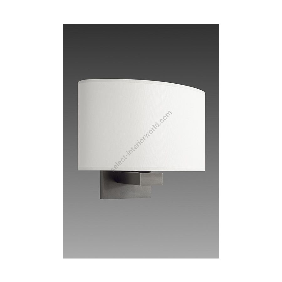 Made with a fixed arm on a wide rectangular base. This wall light gives a touch of elegance to your interior. Available in black or matt gold patina. Presented lamp shade in white cotton chintz in a ovale shape (see other available shapes and colours)