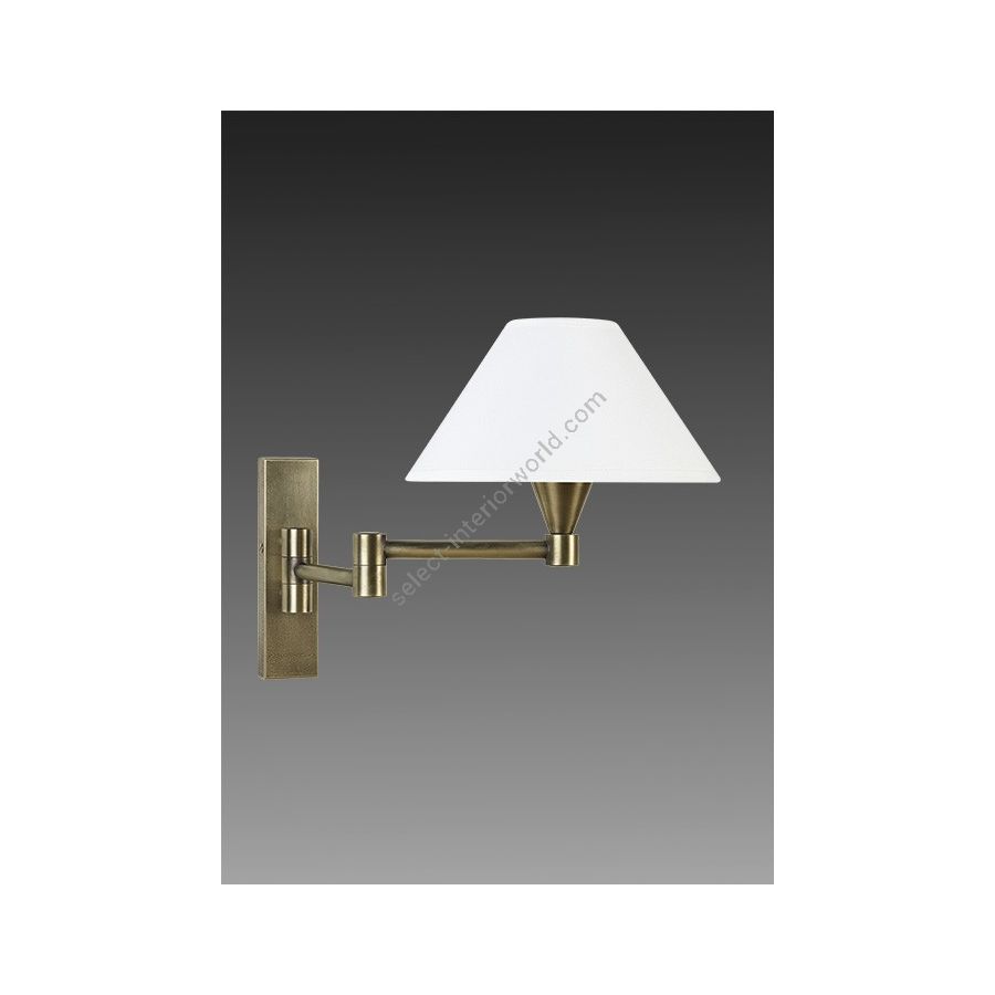 Wall light made in brass. Made with a double swing arm on a rectangular base. This classiacl wall light gives a nice light next to bed. Available in black or matt gold patina, and in nickel or brushed nickel. Presented lamp shade in white cotton chintz in a conical shape (see other available shapes and colours)