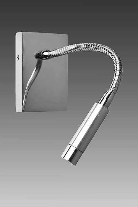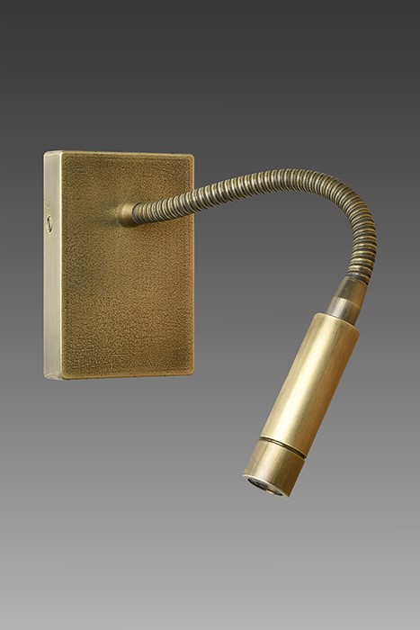 Wall light with Led light made in brass. Made with a 30cm flex on an rectangular base, with wall command (without switch). This reading wall light gives a sober and elegant design, and an efficient direct light. Available in black or matt gold patina, and in nickel or brushed nickel