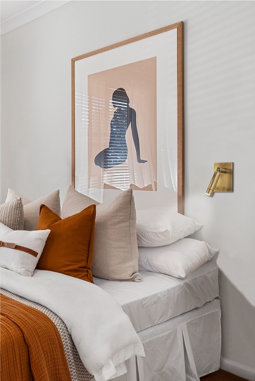 Wall light with Led light made in brass. Made with a led head fixed with a rotating kneecap, on an embedded rectangular plate with wall command (without switch). This reading wall light gives a sober and elegant design, and an efficient direct light. Available in black or matt gold patina, and in nickel or brushed nickel