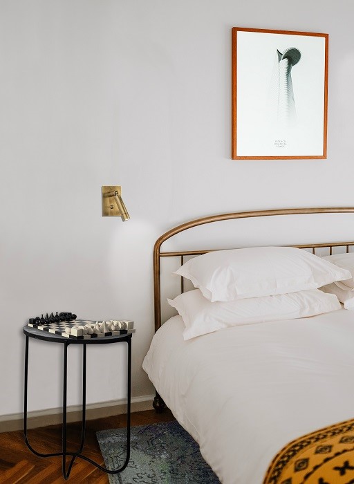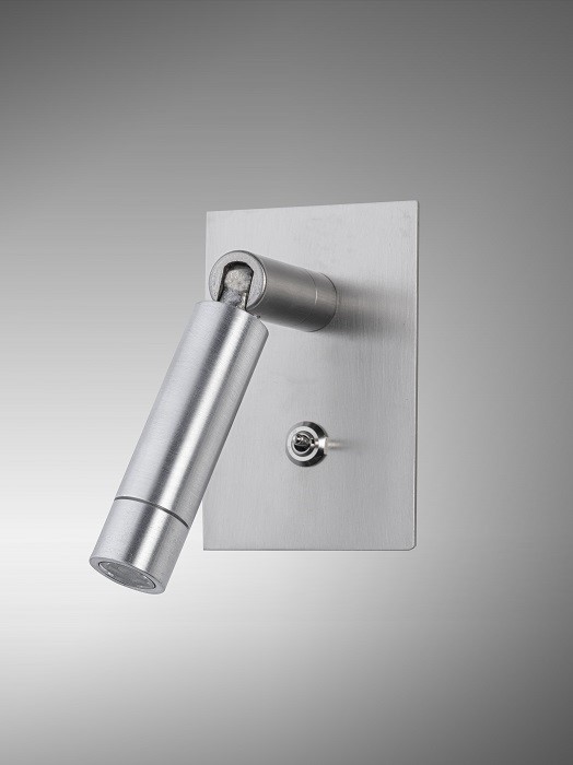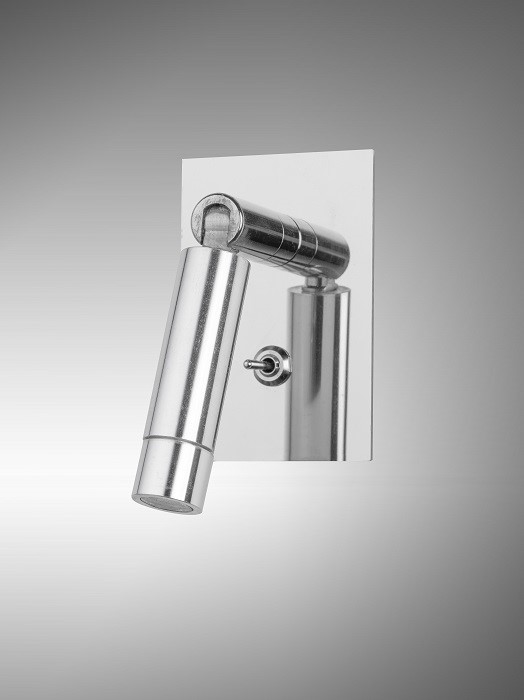 Wall light with Led light made in brass. Made with a led head fixed with a rotating kneecap, on an embedded rectangular plate with switch. This reading wall light gives a sober and elegant design, and an efficient direct light. Available in black or matt gold patina, and in nickel or brushed nickel