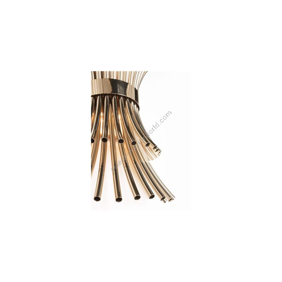 Die modernen Leuchten von Flusso verbinden Tanz und Beleuchtung und schaffen ein spektakuläres und extravagantes Lichtdesign. Alle vergoldeten Messingrohre werden von Hand geformt und zusammengebaut.
