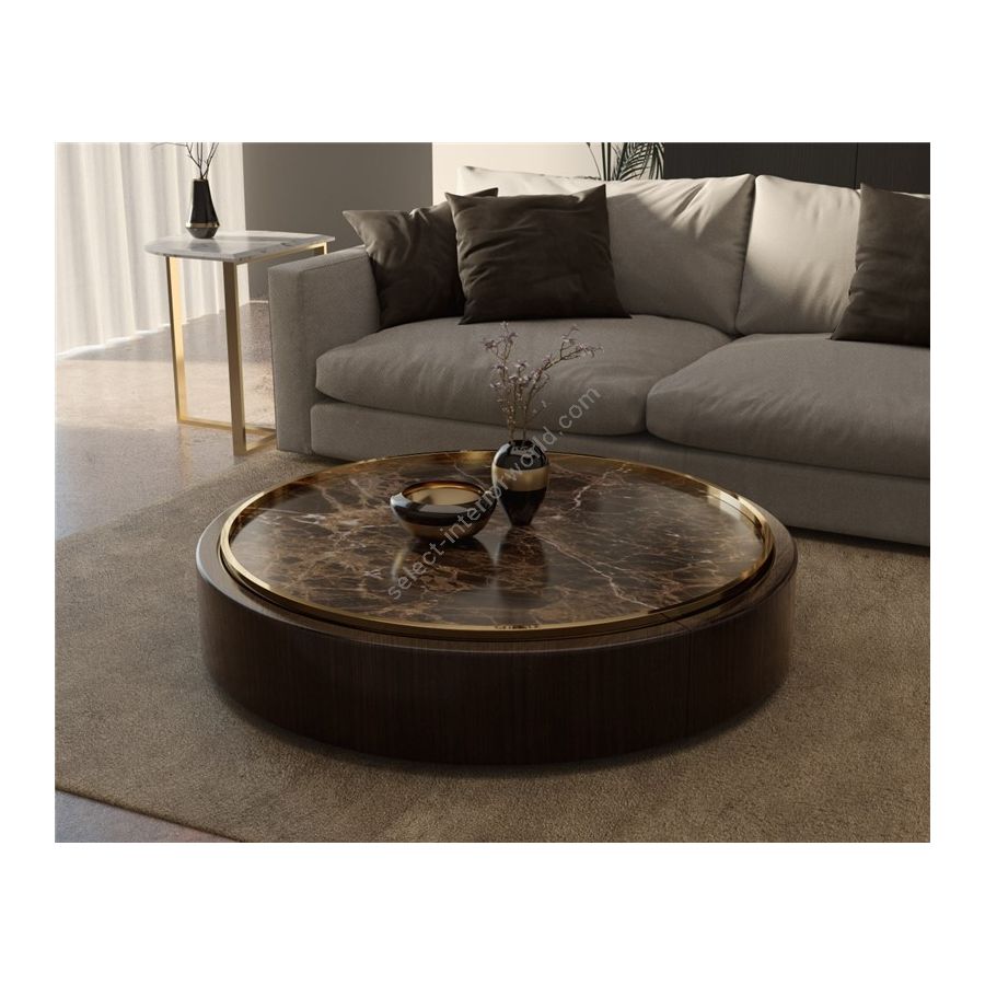 Gianna ist ein feminin inspiriertes Möbeldesign, das mehr als nur eine attraktive Silhouette präsentiert. Es veranschaulicht eine charismatische Haltung, die mit großer Sorgfalt und Liebe zum kleinsten Detail handgefertigt wird, um die Raffinesse dieses dekorativen Stücks zu präsentieren. Lassen Sie sich inspirieren, das Wohnzimmer mit einem minimalistischen, aber raffinierten Lifestyle-Stück zu dekorieren, das drei Kräfte vereint: Messing, Holz und Marmor. Ein Tisch, der ein exquisiter Blickfang ist und jedes Szenario in einen verführerischen Raum verwandeln kann. Der Messingzylinder, der die Tischplatte bedeckt, verleiht diesem Tisch ein unverwechselbares Aussehen und macht die Komposition einzigartig. Die Kombination dieser hochwertigen Materialien verleiht diesem luxuriösen runden Tisch Extravaganz. Ein Design, das für einen modernen High-End-Innenraum gedacht ist, aber dennoch sehr vielseitig sein und jeden Raum hervorheben kann.