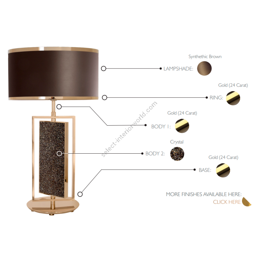 Die jordanische Stadt Petra ist eine der berühmtesten archäologischen Stätten der Welt und zeichnet sich durch massive, tief in den Wüstensandstein gehauene Strukturen aus. Die „Rosenstadt“ Petra war die Inspiration für diese Kollektion, deren Design uns zu den Tempeln und antiken Reichtümern führt. Die Kristallfelsen in der Mitte verleihen diesem maskulinen Design einen Hauch von Eleganz. Sie werden von einer rechteckigen Struktur aus vergoldetem Messing eingerahmt, die ihm eine harmonische Balance verleiht. Der Lampenschirm mit einem Streifen aus vergoldetem Messing an beiden Enden vermittelt einen luxuriösen und anspruchsvollen Look, der nicht unbemerkt bleibt. Dieses zeitlose, verführerische Design ist die perfekte dekorative Lampe, die in die anspruchsvollsten Dekore und High-End-Projekte passt. Die Verwendung zahlreicher Materialien wie Messing und zarte Kristallfelsen ermöglicht es dieser einzigartigen Leuchte, Sie in eine exotische Umgebung zu versetzen, wenn sich Licht durch die Atmosphäre ausbreitet.