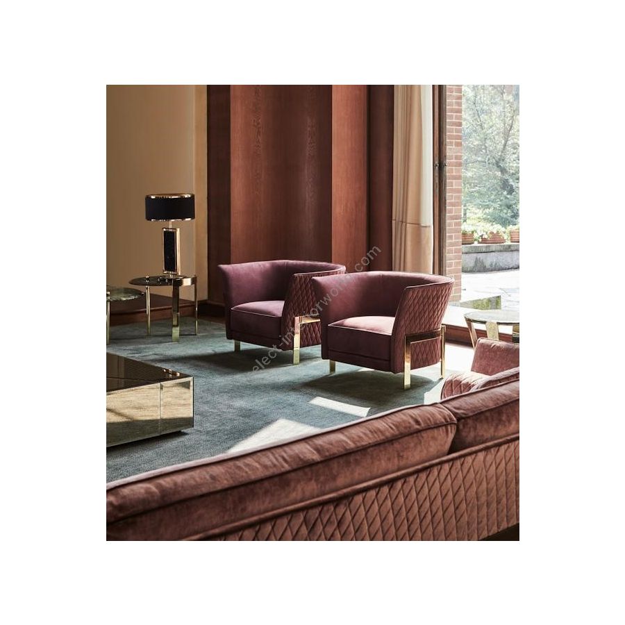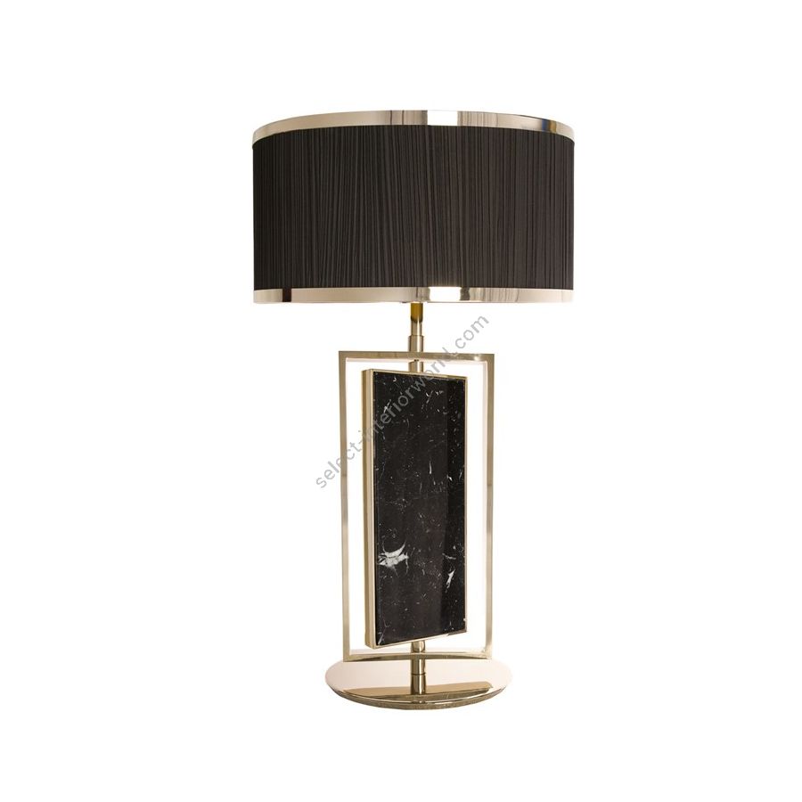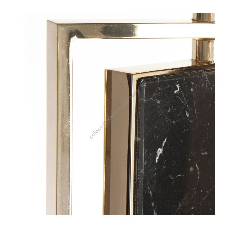 Die jordanische Stadt Petra ist eine der berühmtesten archäologischen Stätten der Welt und zeichnet sich durch massive, tief in den Wüstensandstein gehauene Strukturen aus. Die „Rosenstadt“ Petra war die Inspiration für diese Kollektion, deren Design uns zu den Tempeln und antiken Reichtümern führt. Der Marmorblock aus Nero Marquina in der Mitte erinnert an einen archäologischen Stein, eingerahmt von einer goldenen Messingstruktur, die dem Stück ein harmonisches Gleichgewicht verleiht. Der schwarze Schirm mit einem goldenen Streifen an beiden Enden vermittelt einen luxuriösen und anspruchsvollen Look, der nicht unbemerkt bleibt. Dieses zeitlose, verführerische Design ist die perfekte dekorative Lampe, die in die anspruchsvollsten Dekore und High-End-Projekte passt. Die Verwendung zahlreicher Materialien wie Messing und Marmor ermöglicht es dieser einzigartigen Leuchte, Sie in eine exotische Umgebung zu versetzen, wenn sich Licht durch die Atmosphäre ausbreitet.