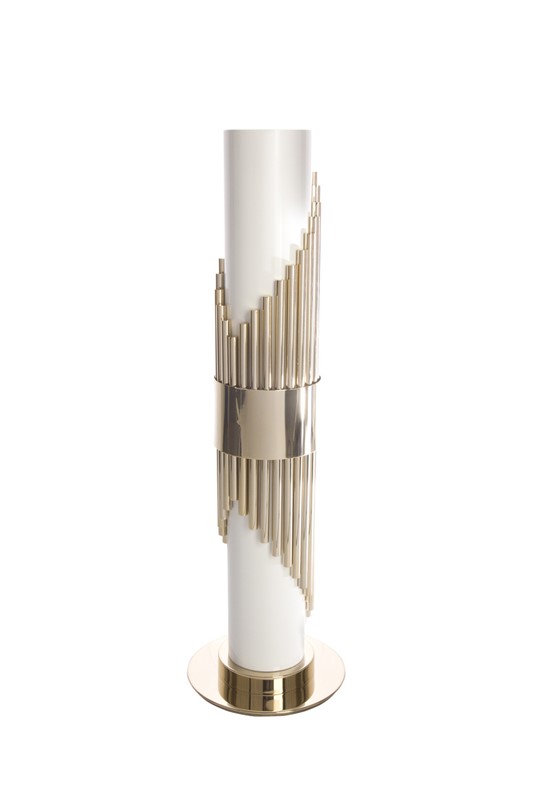This unique bespoke collection combines two different finishes – brushed and hammered – applied by hand in the gold plated brass. The reflection of light strives to convey balance through squared shapes that lead to a gentle diffusion, granting to the surrounding space the all-time perfect inviting ambiance.