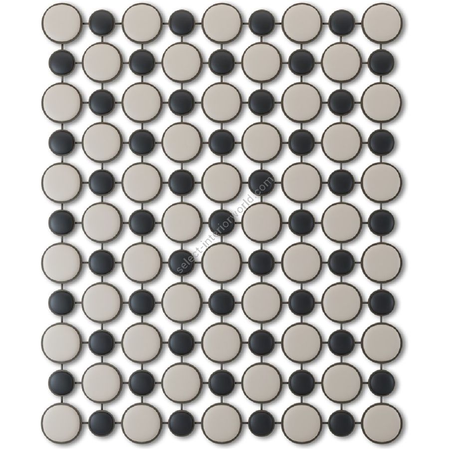 Inspired by the famous game, this stunning contemporary headboard is made up of rows with alternating larger and smaller upholstered discs encircled in wood and joined together by a metal frame. A spectacular, eye-catching statement piece!