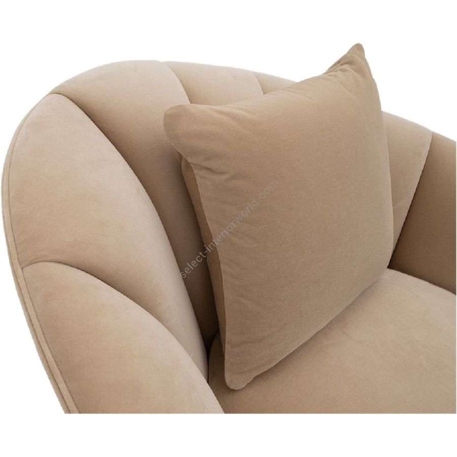 Dieser Loungesessel besticht durch seine markante, schulterfreie, schräge Rückenlehne mit gewelltem Rand und üppiger Polsterung. Die handgeschmiedeten Metallbeine bilden einen idealen Kontrast zur dick gepolsterten Sitzfläche. Kombinieren Sie ihn mit Alexandrine Droite (60-0390) für perfekte Symmetrie.
