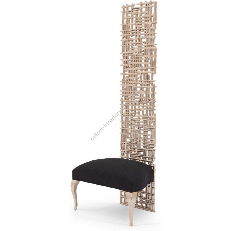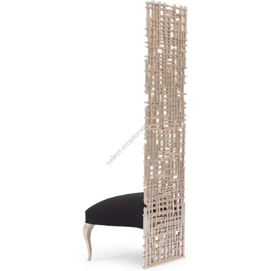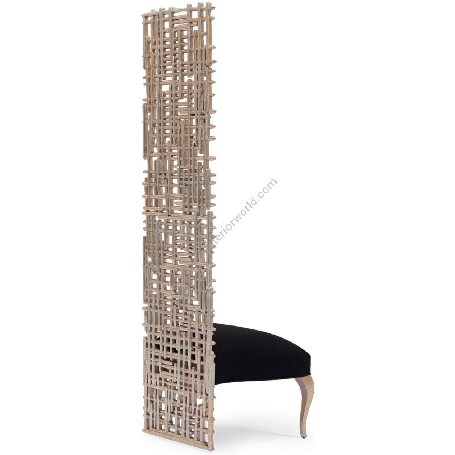 A spectacular statement piece, this palatial chair is painstakingly hand carved from solid certified mahogany and features a straight back in the form of a ‘twig grid’ and simple elegant seat with saber legs.