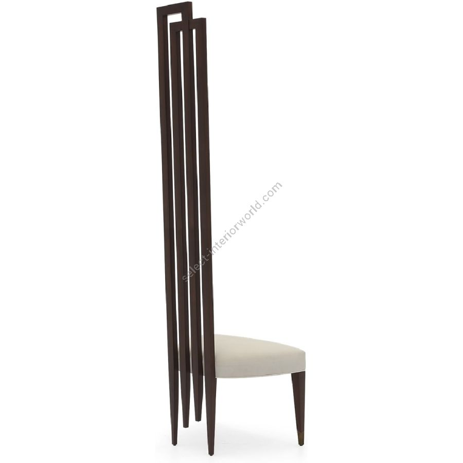 Die statuenhafte Haltung mit den Beinen mit Metalloberfläche und den zeitlosen ineinandergreifenden Formen dieses palastartigen Stuhls wurde von Christopher entworfen, um ihn an einer Wand auszurichten, idealerweise als Paar, auf beiden Seiten eines Konsolentisches oder eines großen Spiegels ...