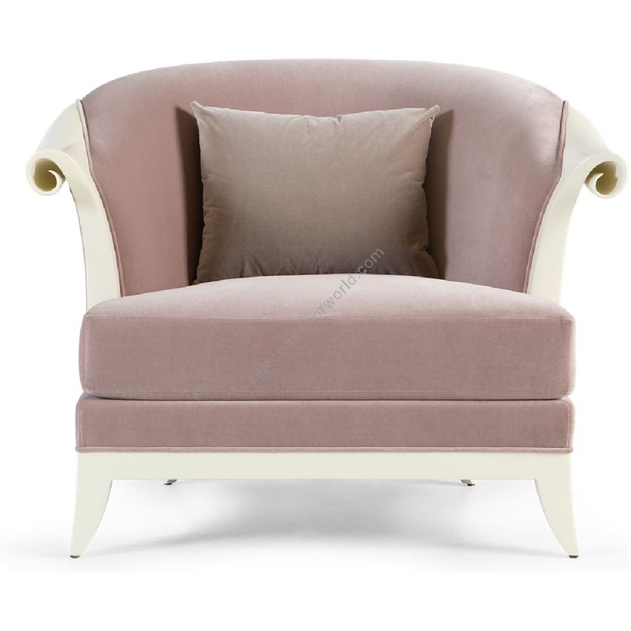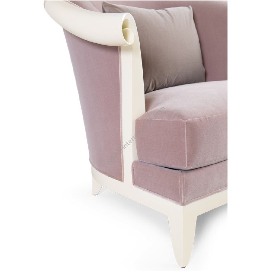 Die Markenzeichen dieses luxuriösen, modern gestalteten Demi-Lune-Loungesessels sind die Säbelbeine und die dramatischen Armlehnen mit der geschnitzten Cala-Form.