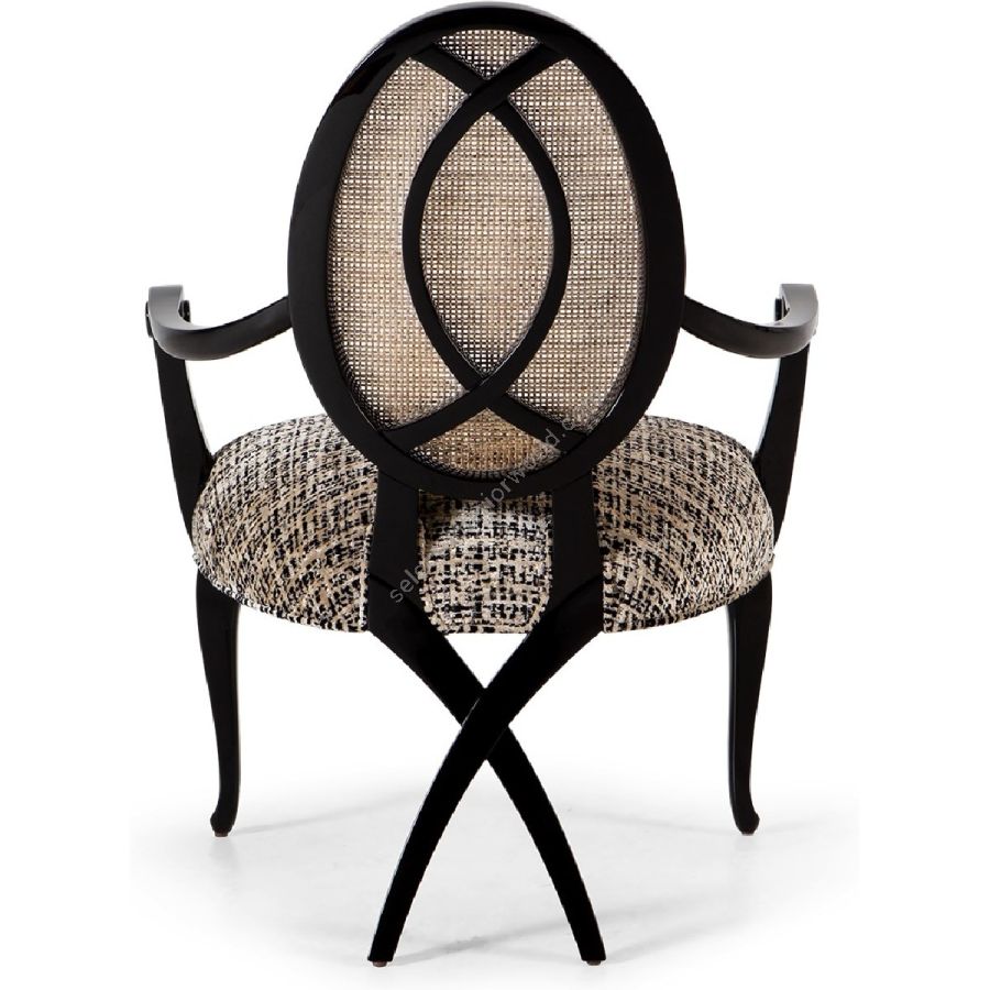 Die Schönheit und Komplexität der vertieften Rattan-Rückenlehne wird durch die fließenden Linien der nach hinten gerichteten „Chris-Cross“-Beine dieses herrlichen Esszimmersessels noch weiter verdeutlicht.