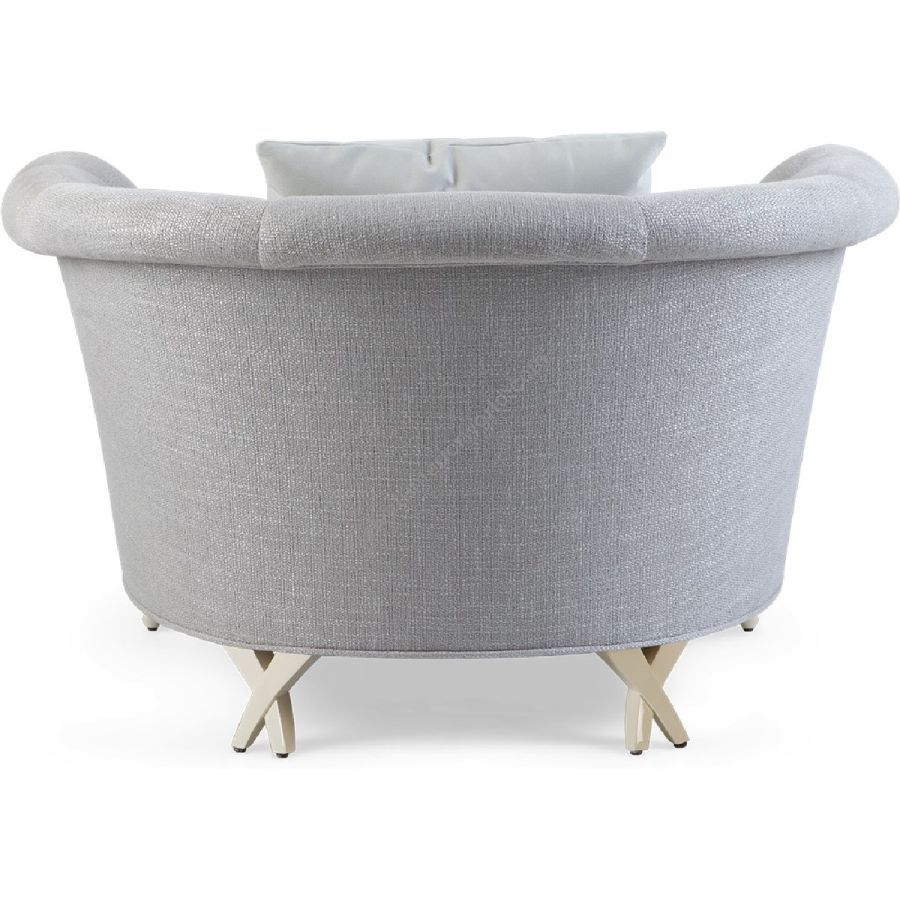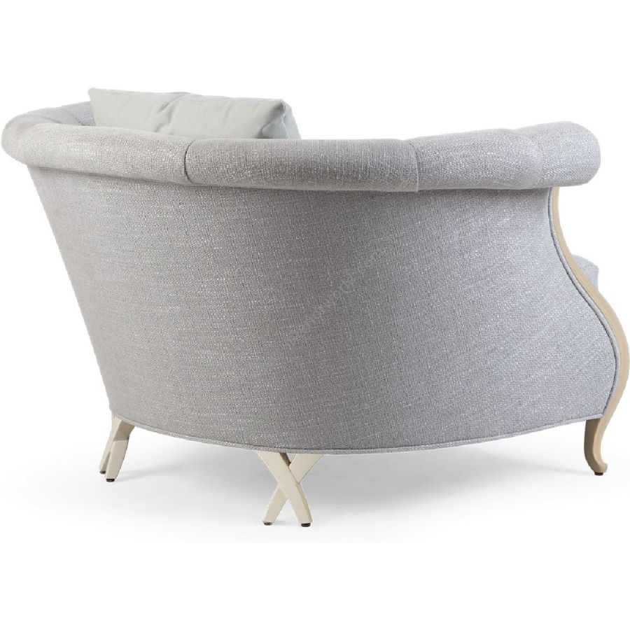 Dieser luxuriöse Clubsessel besticht durch seine hufeisenförmige Rückenlehne mit geschwungener Vorderseite und doppelten, gekreuzten Hinterbeinen – ein imposantes und zugleich elegantes Möbelstück. Auch als Zwei- und Dreisitzer-Sofa erhältlich (60-0517 und 60-1518).