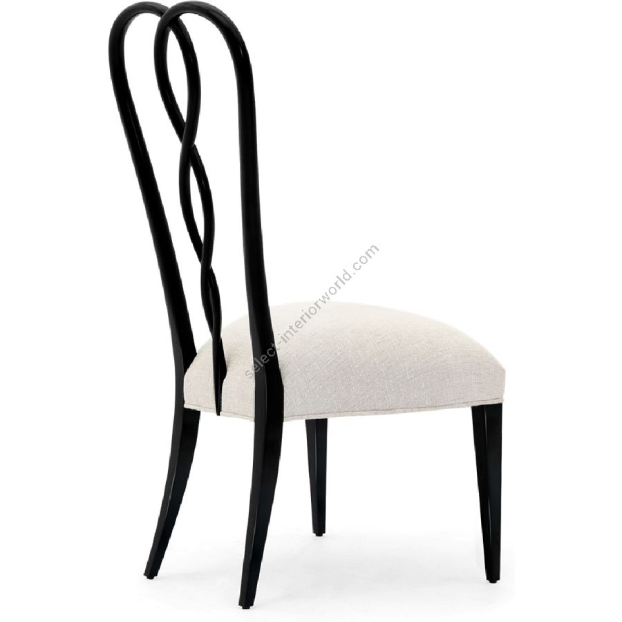 Die Rückenlehne dieses entzückenden Esszimmerstuhls verfügt über eine fachmännisch handgeschnitzte, ineinander verschlungene Mitte, die die perfekte Kombination aus Schlichtheit und dekorativem Flair schafft.