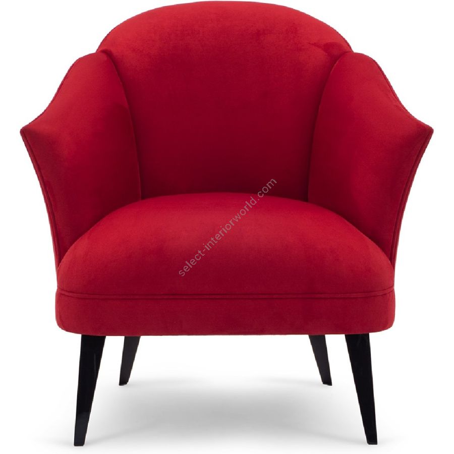 Ein Loungesessel, der Eleganz und Glamour mit dezentem Charme vereint. Die sanften, femininen Rundungen der Rückenlehne gehen nahtlos in die nach außen geschwungenen Armlehnen über.
