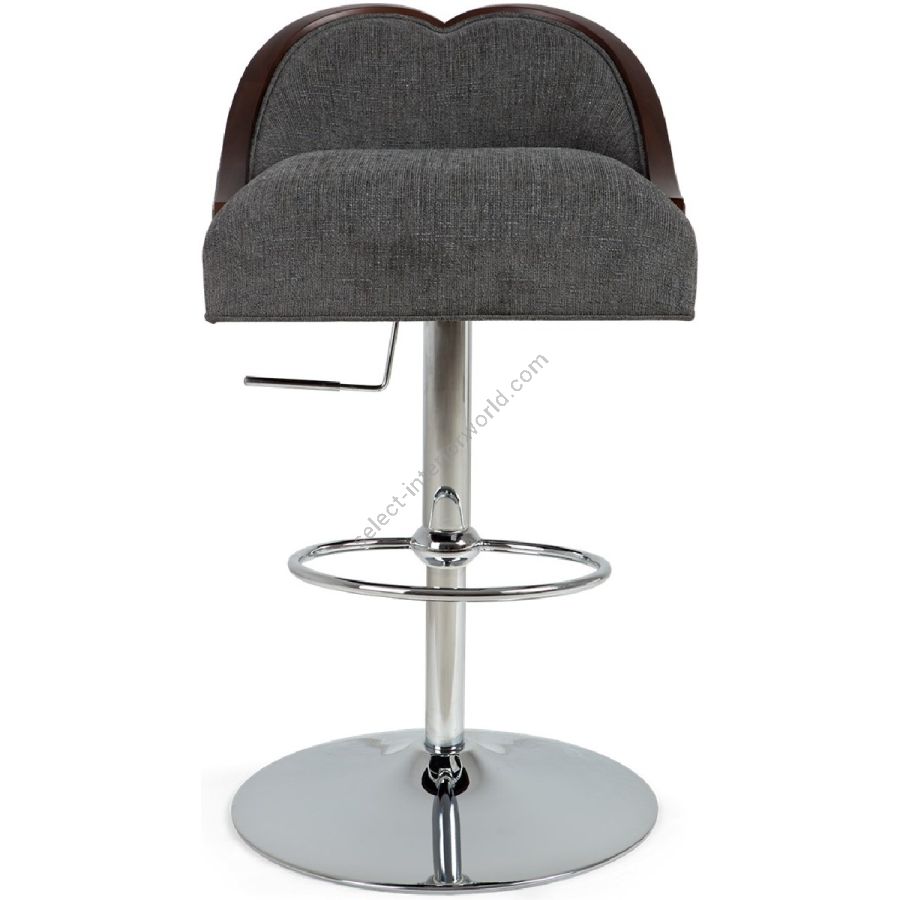 The perfect companion for cocktail counters and bistro tables, this elegant barstool features a contemporary styled metal adjustable height base, and upholstered seat with a sweetheart style back framed with hand carved mahogany.