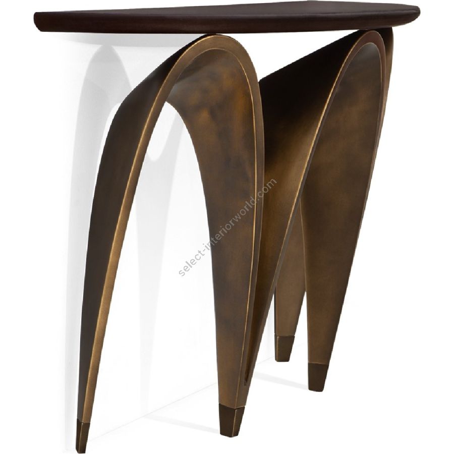 Inspiriert von den Wellen der außergewöhnlichen Stadt der Künste und Wissenschaften von Santiago Calatrava in der spanischen Stadt Valencia, verfügt dieser Konsolentisch über eine halbovale Holzplatte auf einem handgeschnitzten Sockel aus Wellenbögen. Einfach spektakulär!