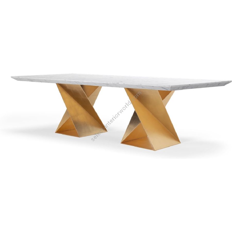 Benannt nach dem Architekturstudio, das Gebäude auf Grundlage der japanischen Papierfaltkunst Origami entwirft, ist Morison ein markanter Esstisch mit einer Marmorplatte auf einem Sockel aus zwei gedrehten Metallprismen. Das perfekte Möbelstück, um einem Esszimmer Dramatik und ein modernes Flair zu verleihen.