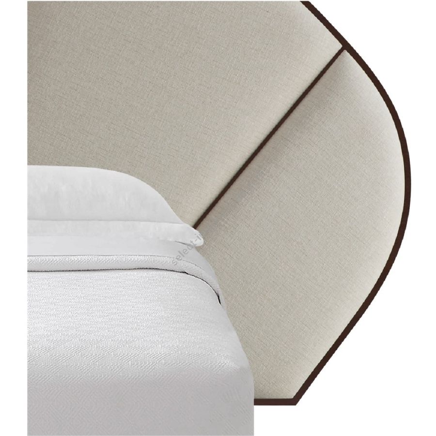 Inspired by a beautiful 1920s handheld fan, the headboard features carved detailing and five sumptuous upholstered panels.