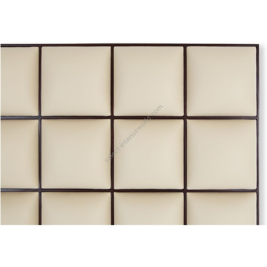 Ein atemberaubendes, modernes Kopfteil, bestehend aus einem Raster quadratischer Paneele, die jeweils von einem feinen Holzrand eingerahmt sind, der an ein Schachbrett erinnert. Größe A besteht aus 56 Blöcken, Größe B aus 70 Blöcken.