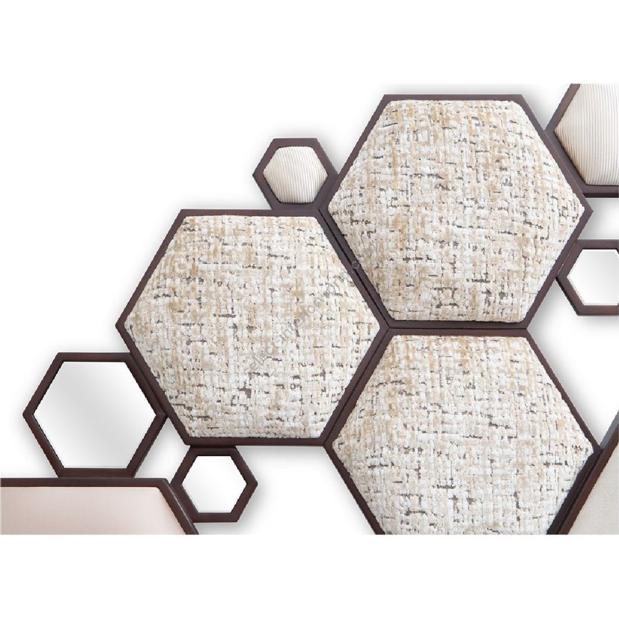 Inspiriert vom französisch-ungarischen Künstler, der als Großvater und Vorreiter der Op-Art-Bewegung gilt, ist Vasarely ein exquisites und faszinierendes Kopfteil, das aus insgesamt 62 unterschiedlich großen, gepolsterten und verspiegelten Sechsecken in Holzrahmen besteht, die einen funkelnden Kreis bilden. Passend für jedes Standardbett. Einfach spektakulär! Auch mit nur gepolsterten Sechsecken erhältlich (20-0799).