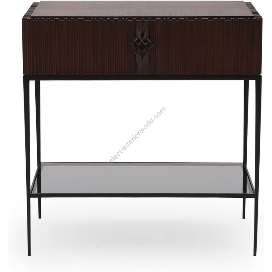 Prächtiger Nachttisch/Beistelltisch mit handgeschnitzten Wellendetails und dem charakteristischen Christopher Guy-Knoten. Mit praktischem Glassockel für Bücher oder persönliche Gegenstände. Chris entdeckte den Welleneffekt an einer alten Wand in einem stillgelegten Treppenhaus von Harrods.