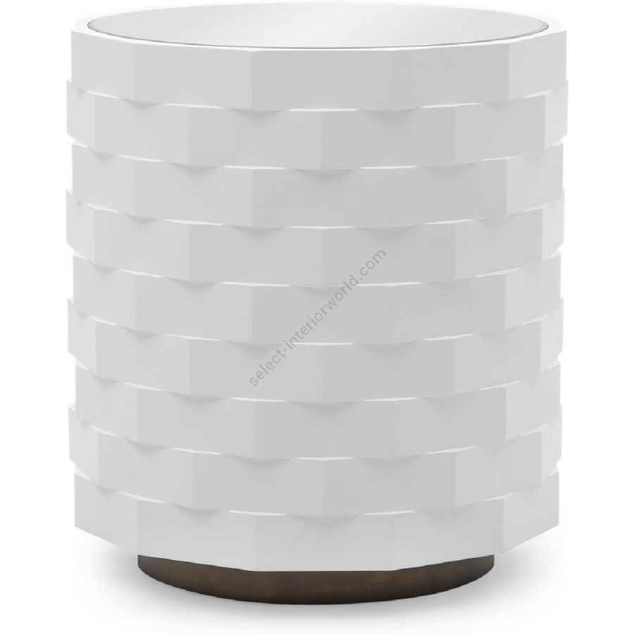 Die raffiniert handgeschnitzten Facetten rund um den Zylinder dieses schönen Beistelltisches erzeugen einen karierten Harlekin-Effekt. Der runde Sockel hat eine verspiegelte Tischplatte. Auch als ovaler Couchtisch (76-0623), quadratischer Couchtisch (76-0621) und rechteckiger Couchtisch (76-0622) erhältlich.