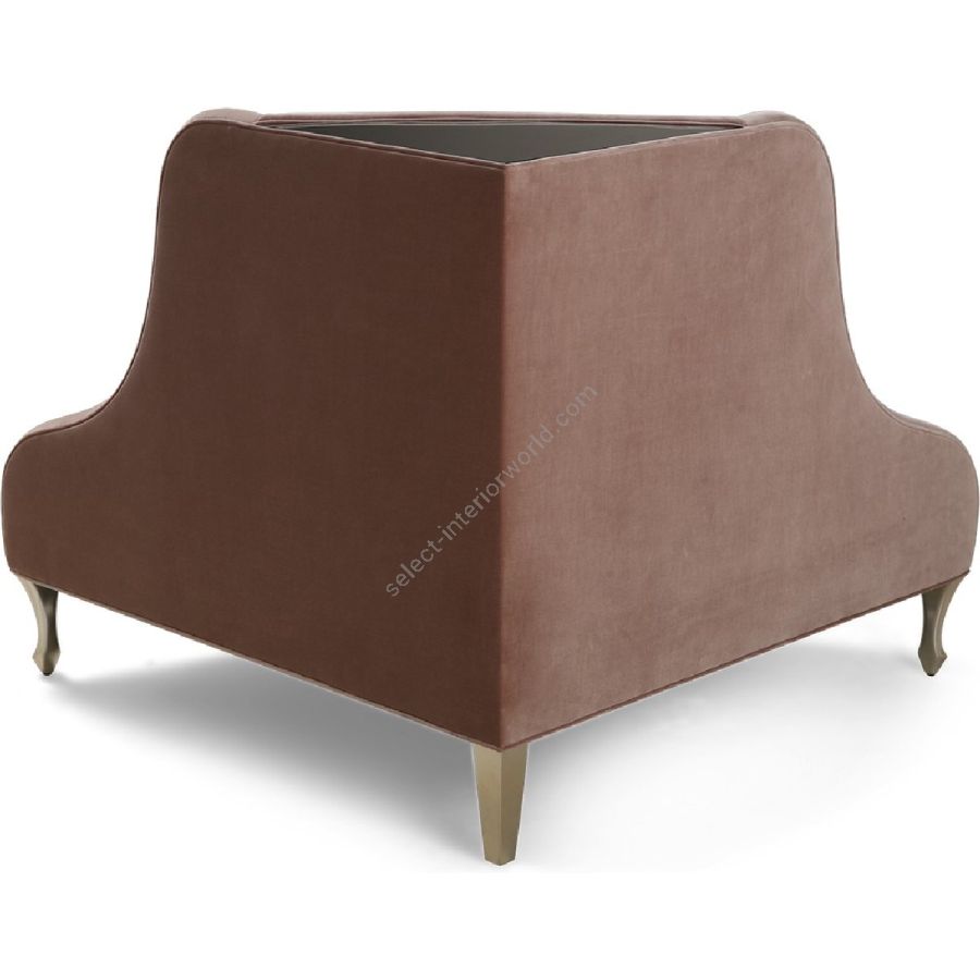Die geschwungenen, ausgeschnittenen Flügel dieses eleganten Ecksofas beherbergen eine üppig gepolsterte Sitzfläche mit dezentem Rückenlehnendesign. Die Glasplatte, die die Rückenlehne krönt, bietet einen idealen Platz für Blumen oder Kunstwerke.