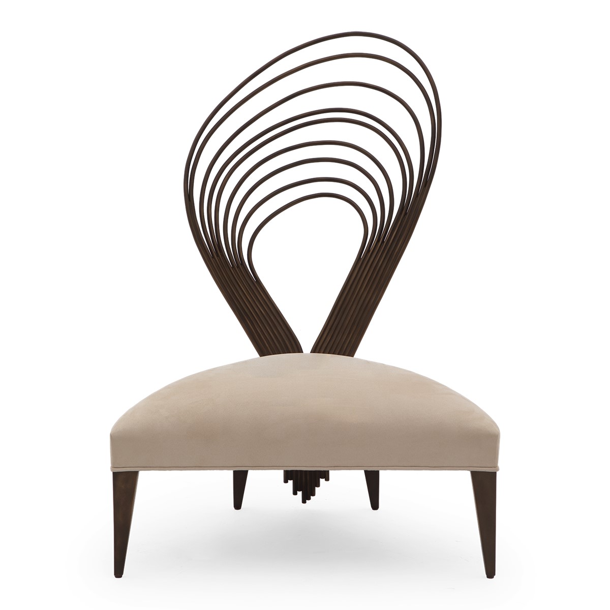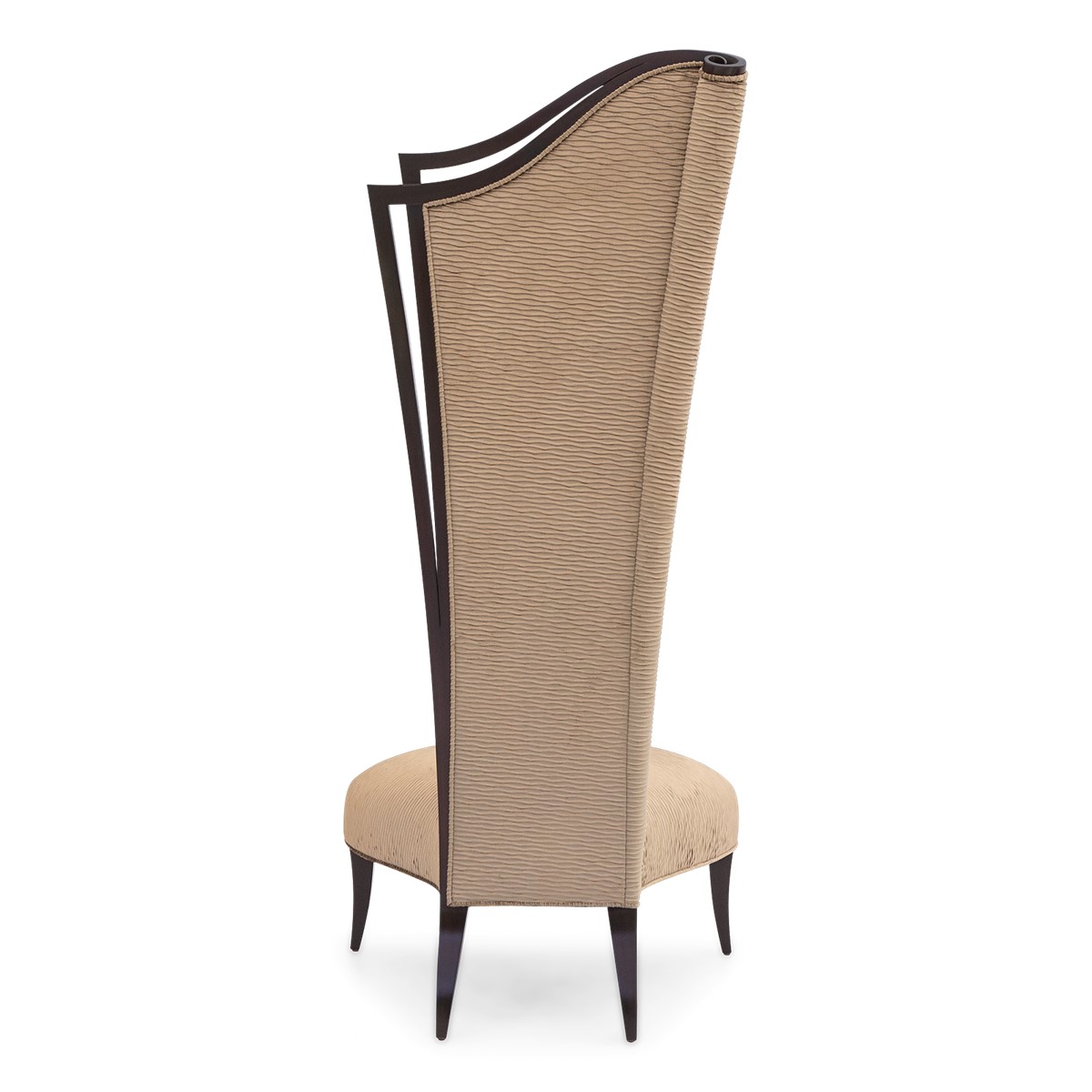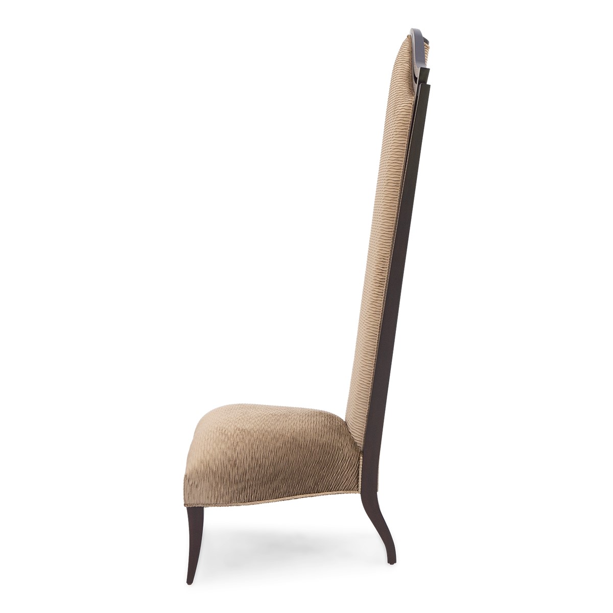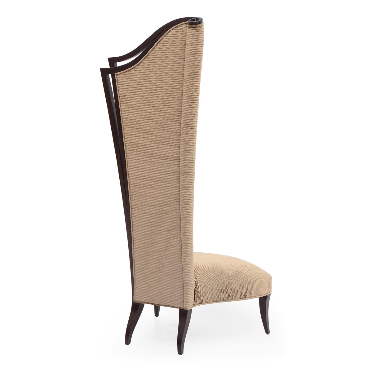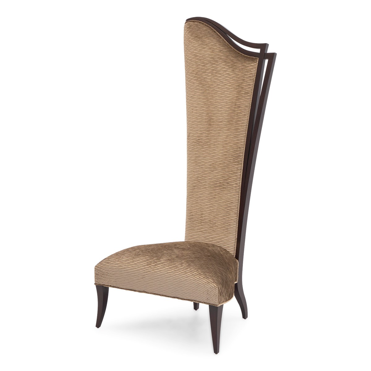 Add a touch of grandeur with this left or right asymmetrical accent chair, with a double curved edge hand-carved from solid mahogany. Also available in reverse (60-0230).