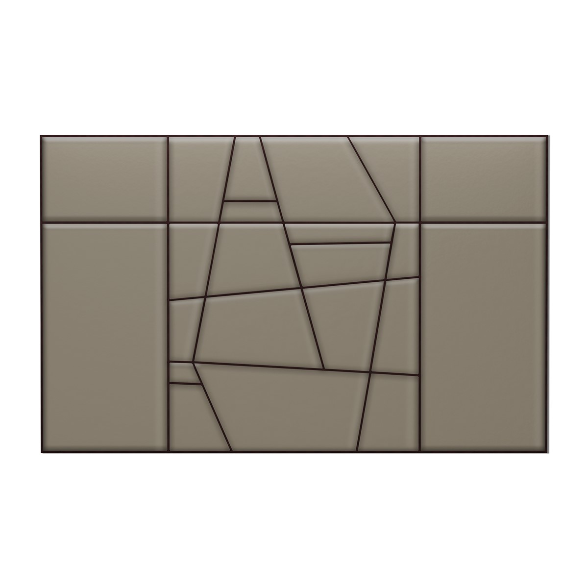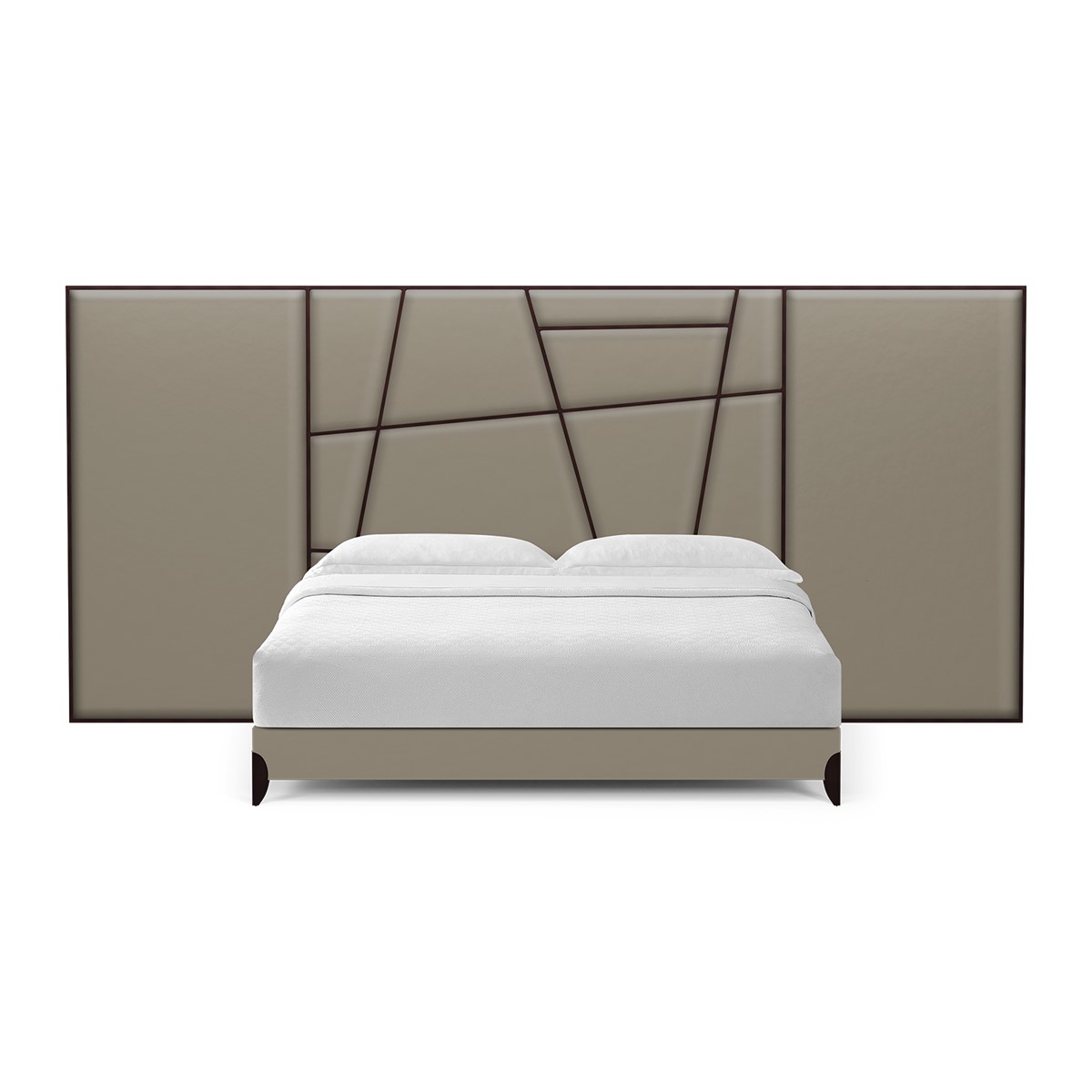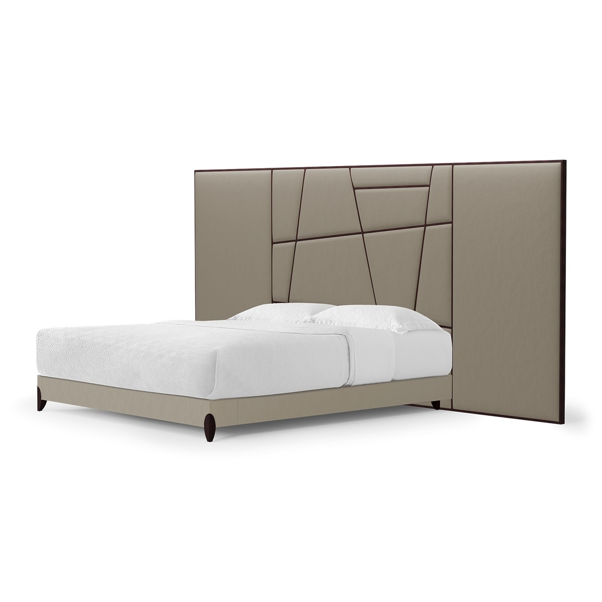 An elegant and hypnotic 3-panel headboard, designed with 15 upholstered panes in irregular geometric shapes that fit into a central square panel with two plain upholstered side panels, suitable for all bed sizes. Also available in a narrow version (20-0789) and high version (20-0790).