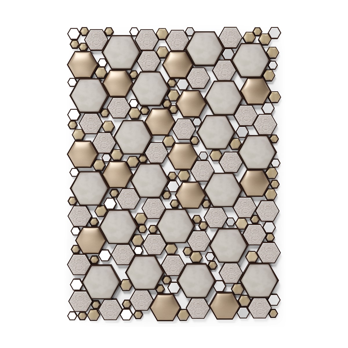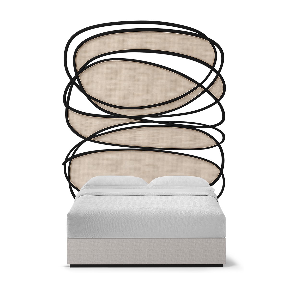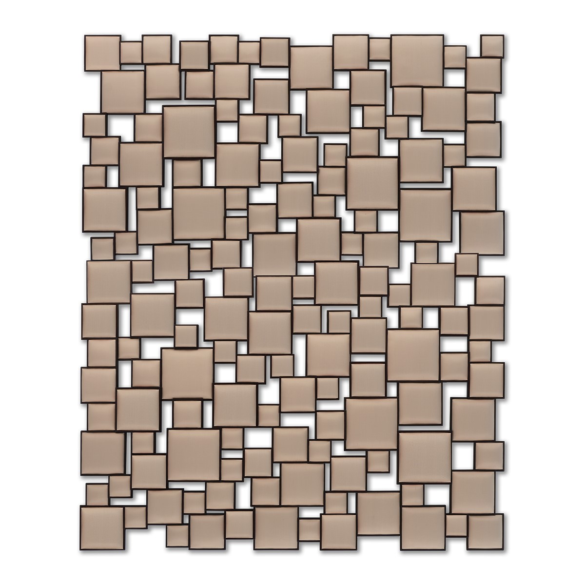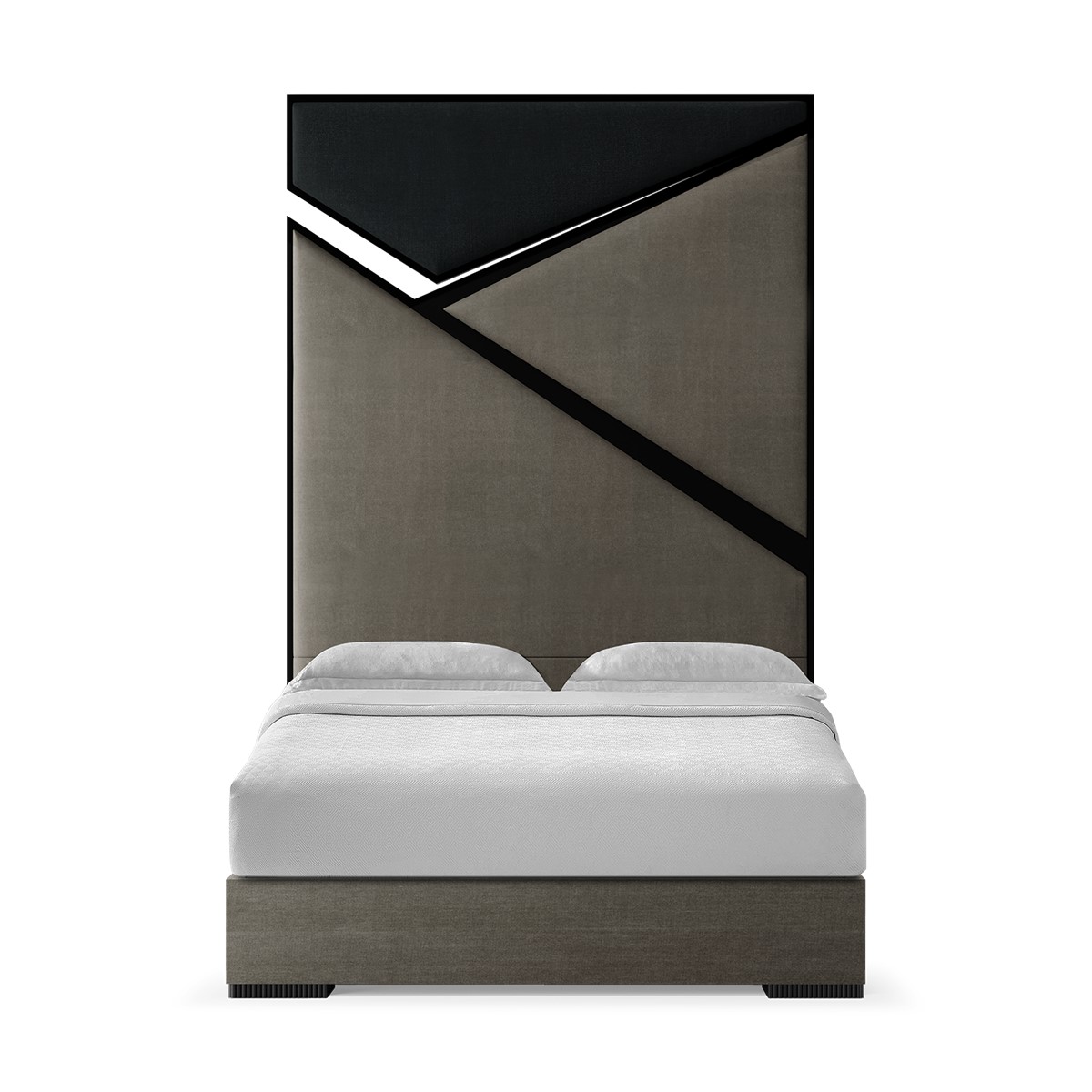 An elegant and hypnotic 3-panel headboard, designed with 15 upholstered panes in irregular geometric shapes that fit into a central square panel with two plain upholstered side panels, suitable for all bed sizes. Also available in a narrow version (20-0789) and high version (20-0790).