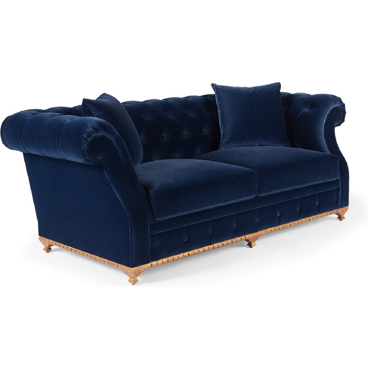 Doweled mortise and tenon frame in solid Mahogany from certified source. Mahogany legs. Eight-way hand tied spring base, with pocket coil seat cushions encased in high-resilient fill and feathered down jacket. Feathered down throw pillows mixed with PolyFiber for added support. Single row buttoned tufting oozing a modern elegance. Available in a selection of finishes. For residential use only. Commercial use is classified as Special Order Design (SOD), and alternative materials may be required. Contact us for details.