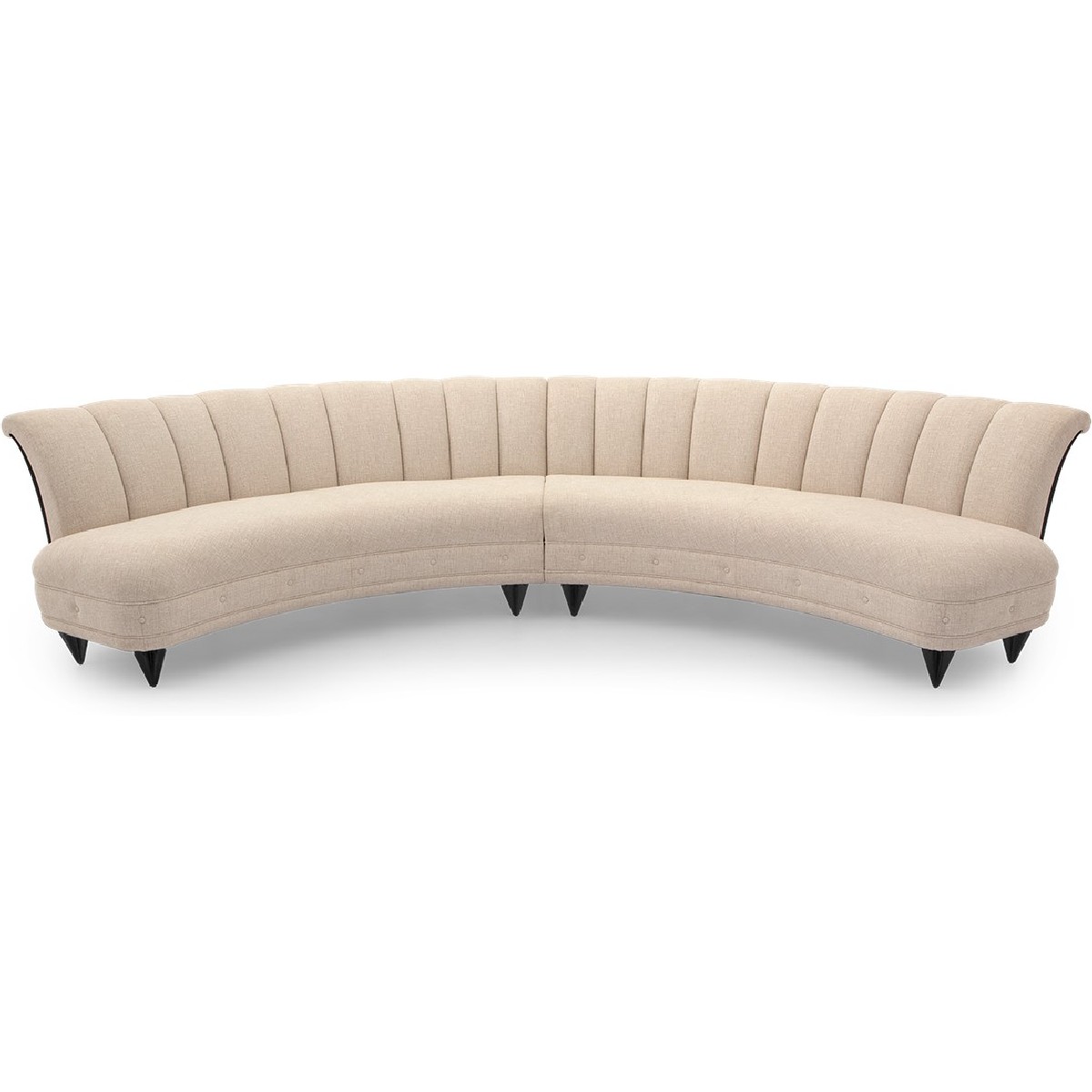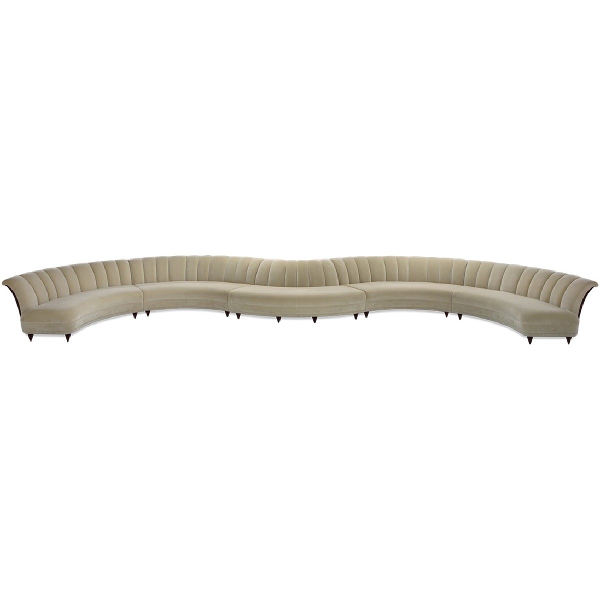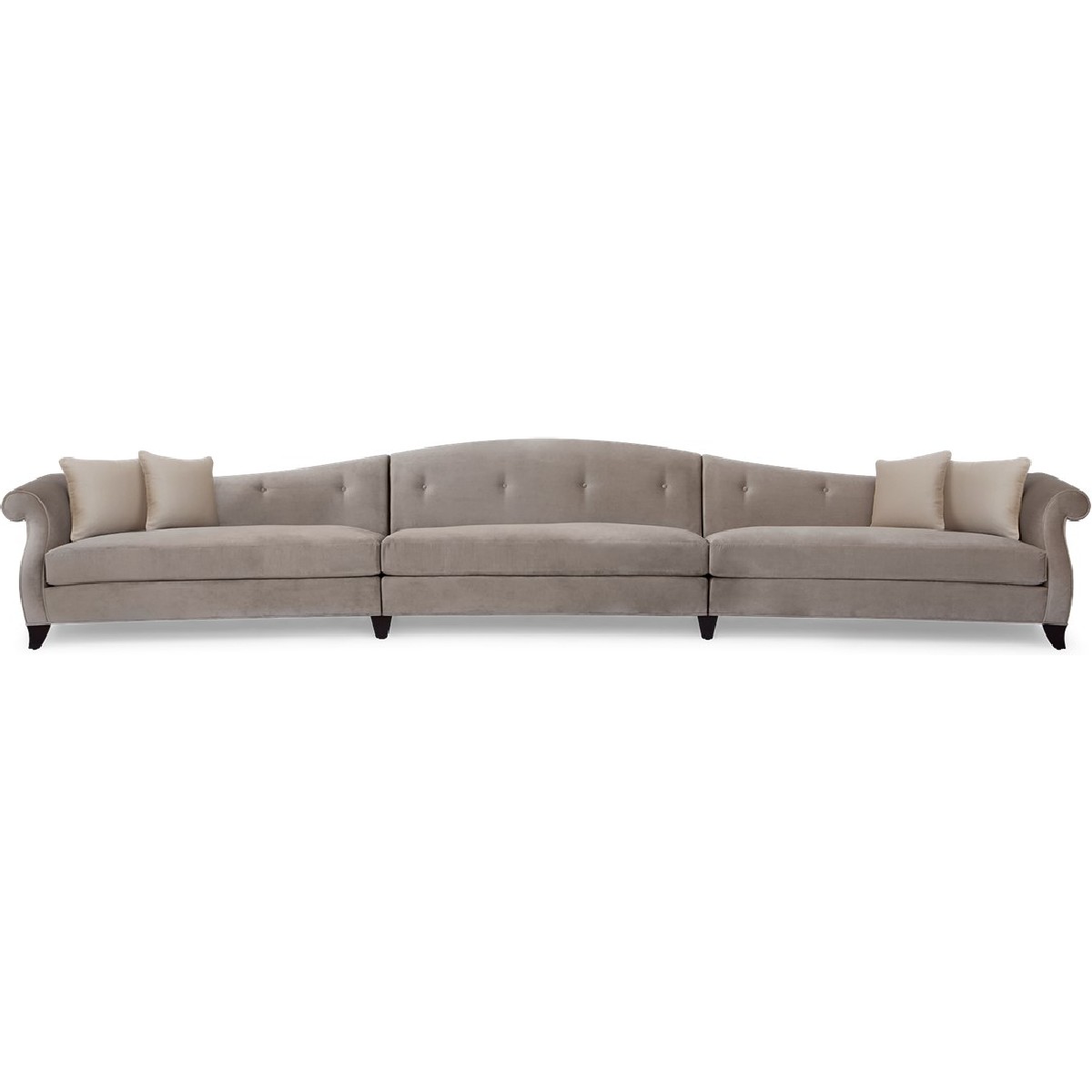 Reflecting the curvaceous vistas found along the river Seine, this sofa features a long gentle curve, softly turned arms and a carved platform onto which the sofa is perched. Also available as a two-seater (60-0302) and a six-seater (60-0320).