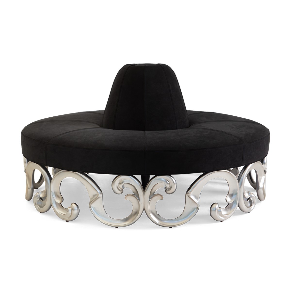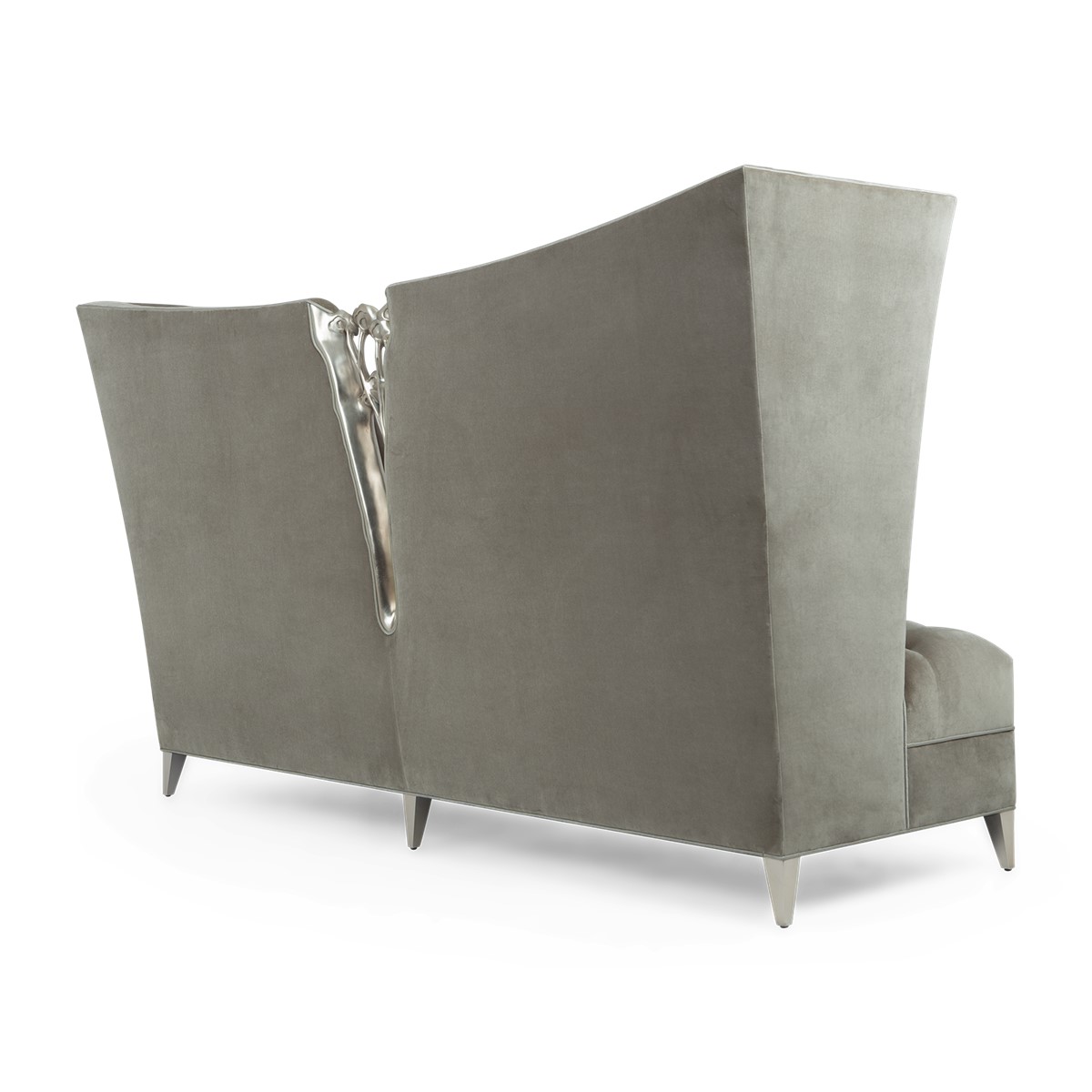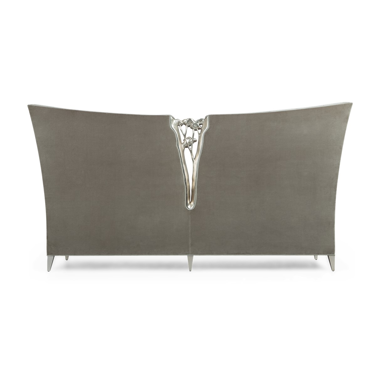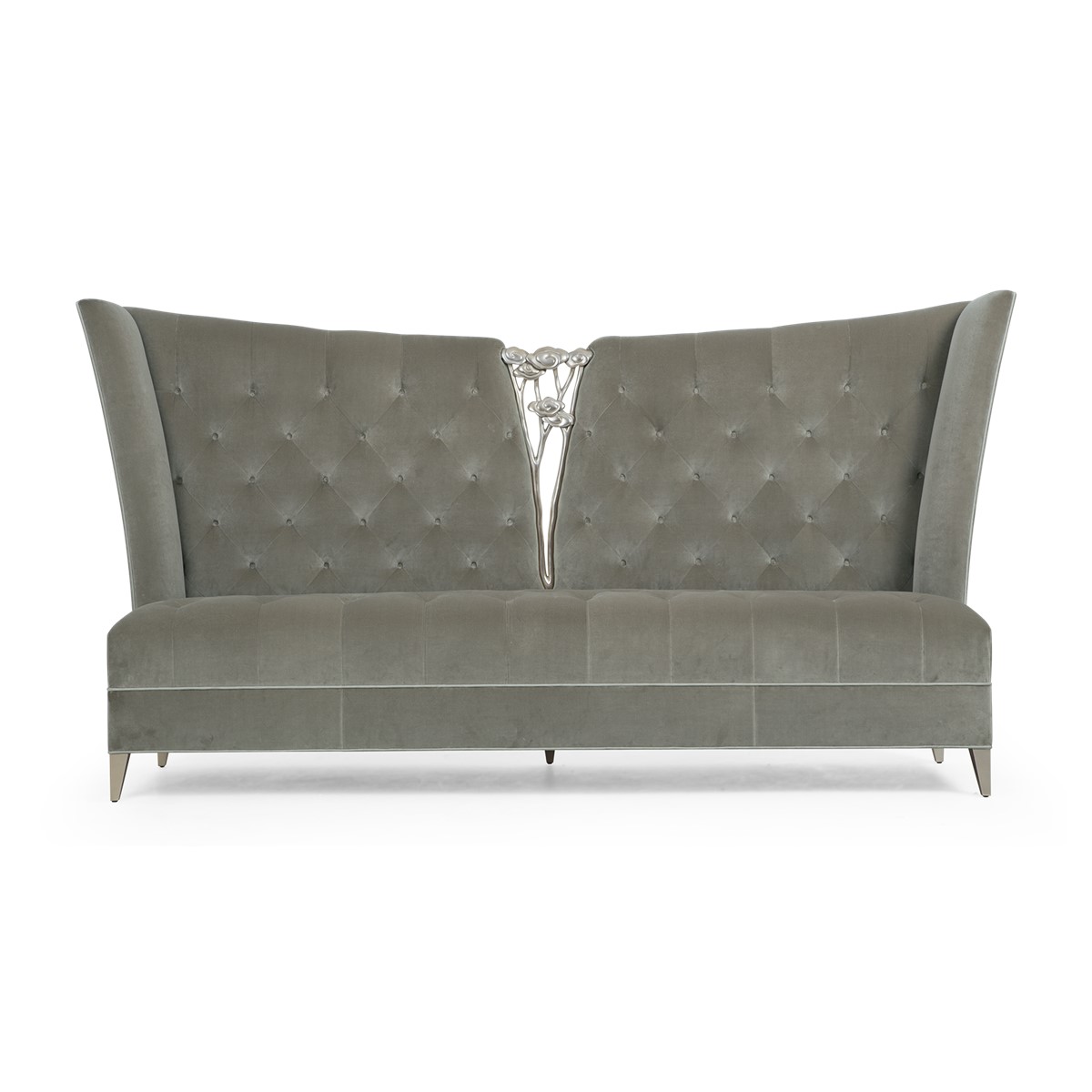 A shelter dining sofa featuring Christopher’s signature hand-carved camellia flowers at the center of the high back. Add in the sumptuous buttoned upholstery and curved wings and this is a truly spectacular piece.